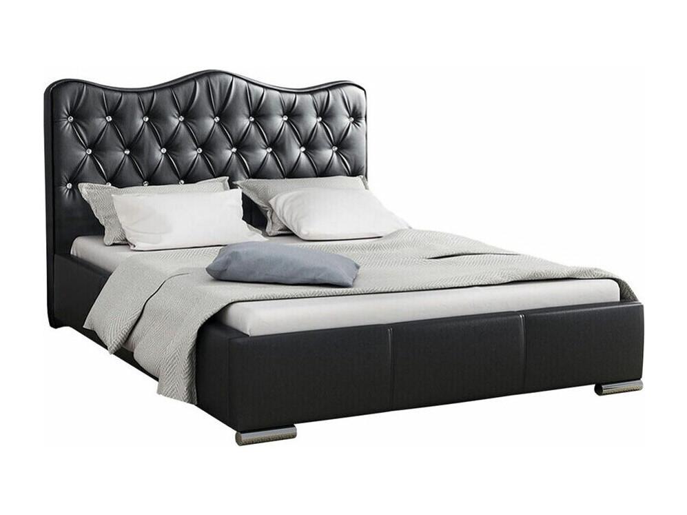 Lit Baltimore 141, Double, Noir, Faux cuir, Sommier à lattes, 200x218x100cm