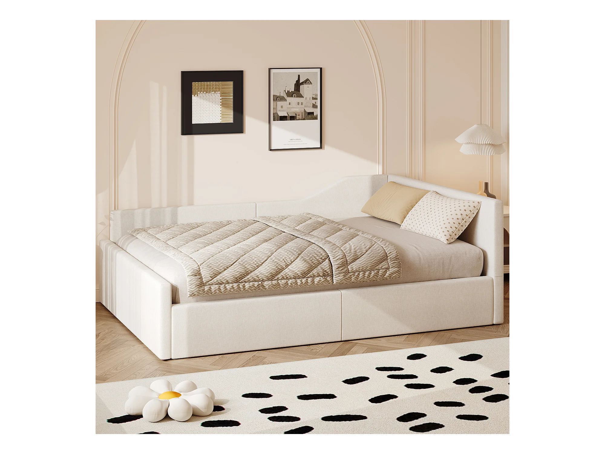Lit banquette 140x200 cm, lin beige, lit avec rangement et sommier à lattes - sans matelas