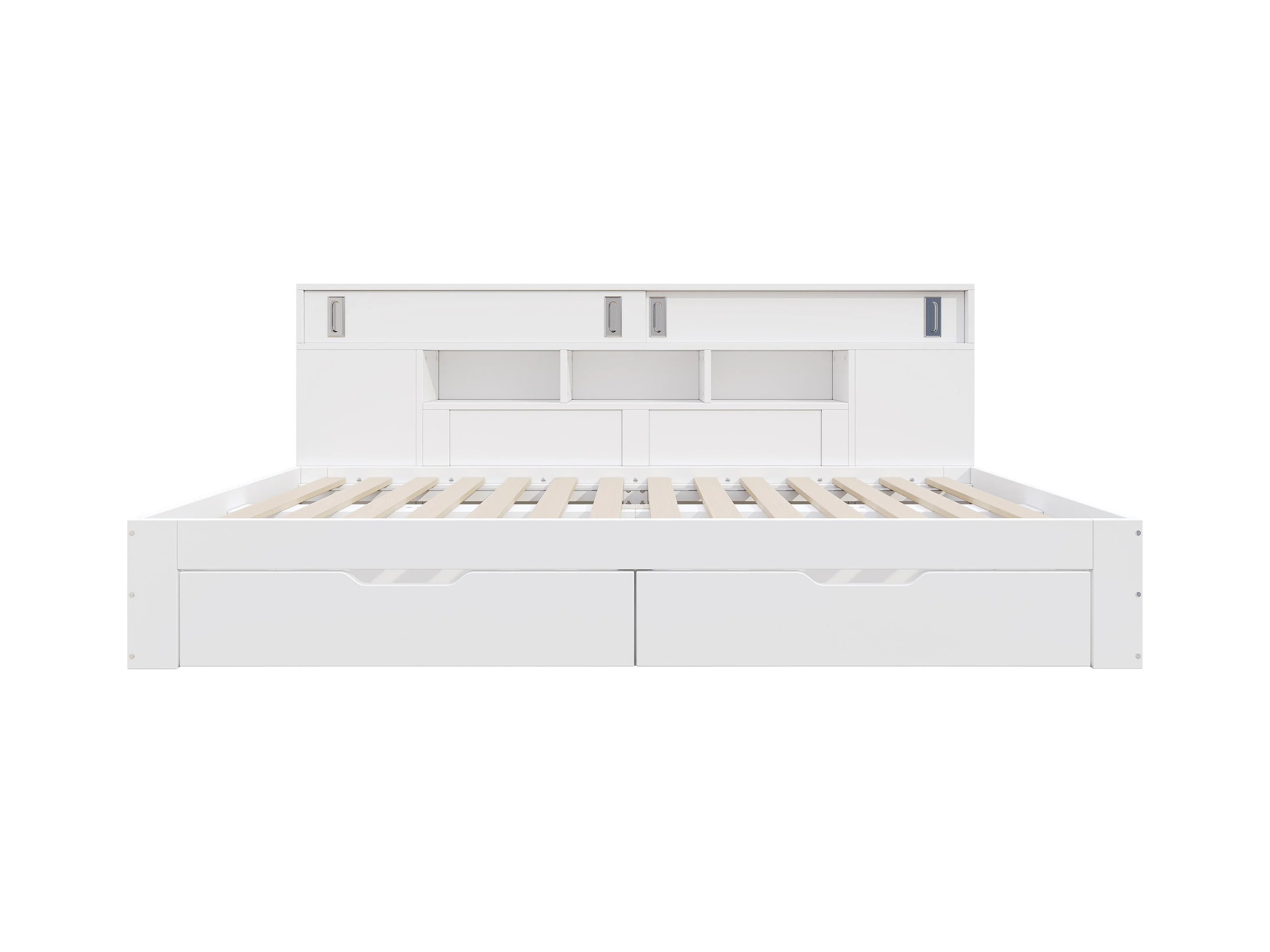 Lit banquette 90x200 cm - avec 2 tiroirs - avec étagères et armoires de rangement - MDF - Blanc(sans matelas)