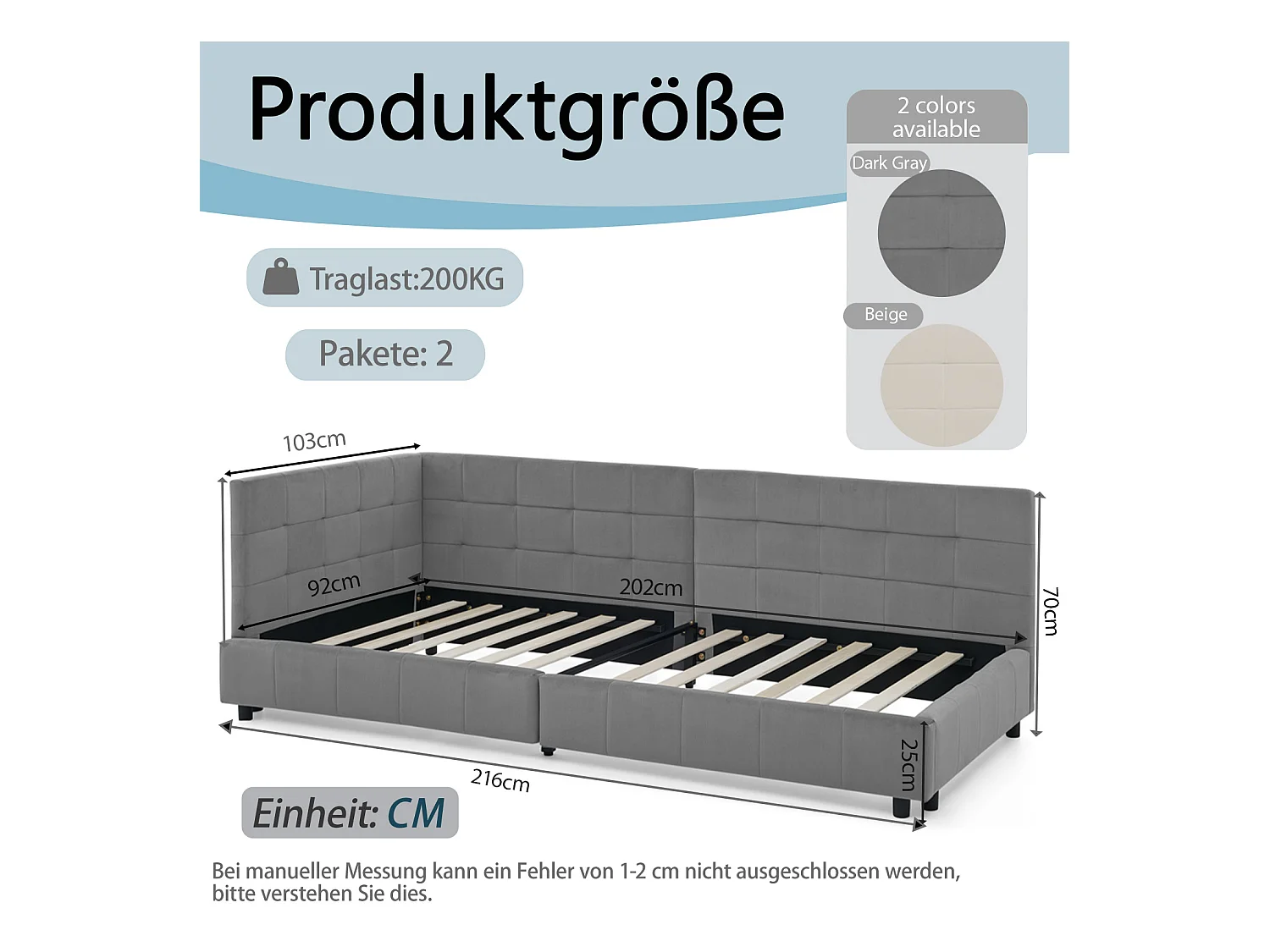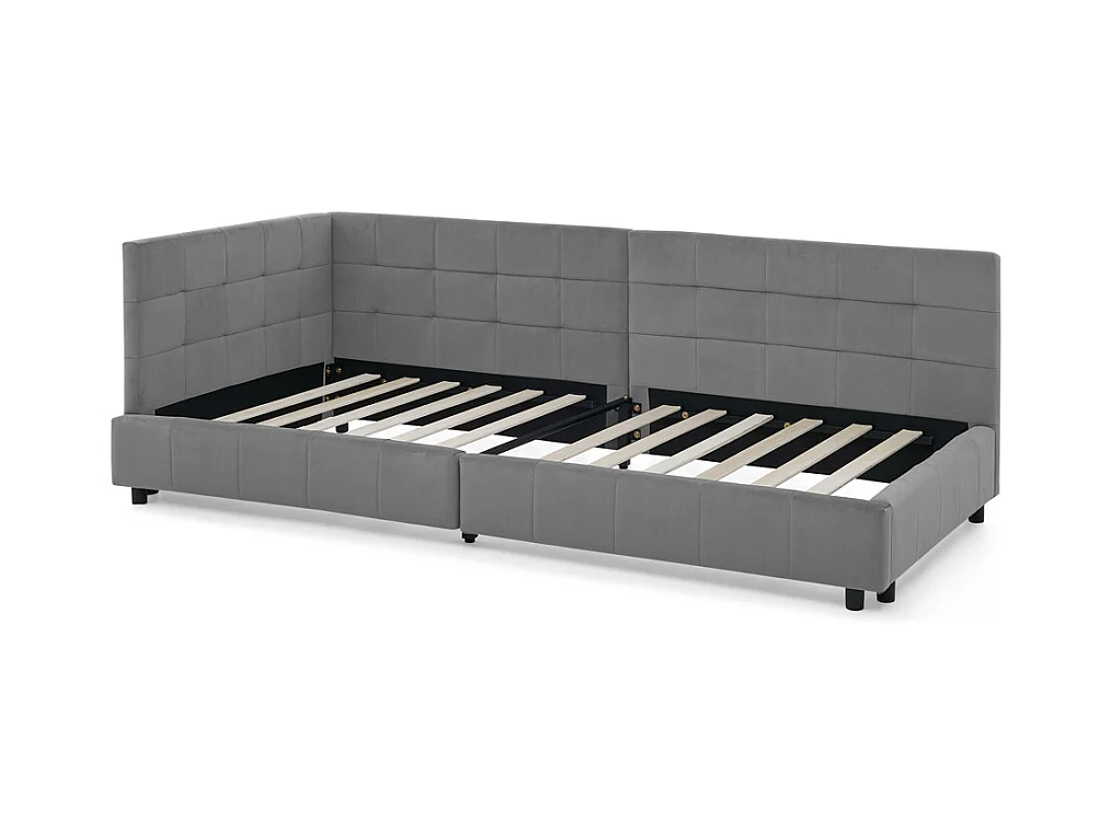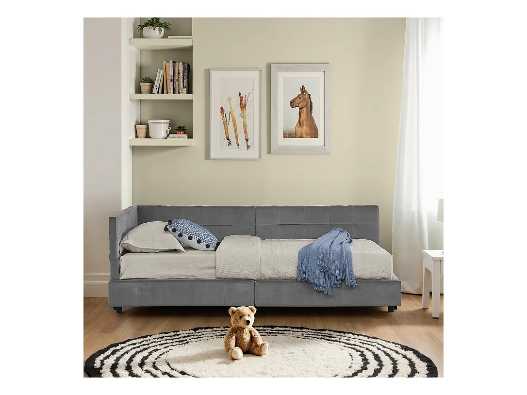 Lit banquette 90x200 cm lit simple avec dossier et sommier à lattes, velours gris - sans matelas
