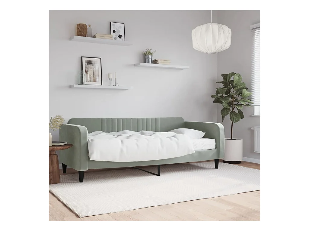 Lit - 90x200 cm avec matelas gris clair velours WVGQ6656
