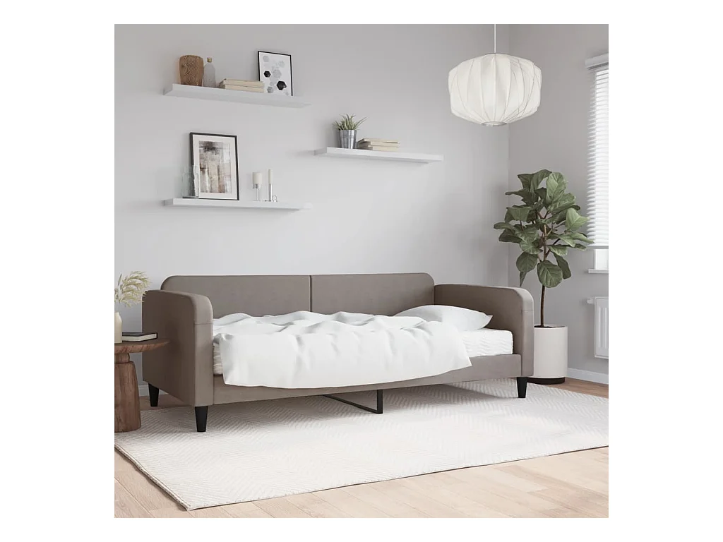 Lit - 90x200 cm avec matelas taupe tissu WVGQ7089