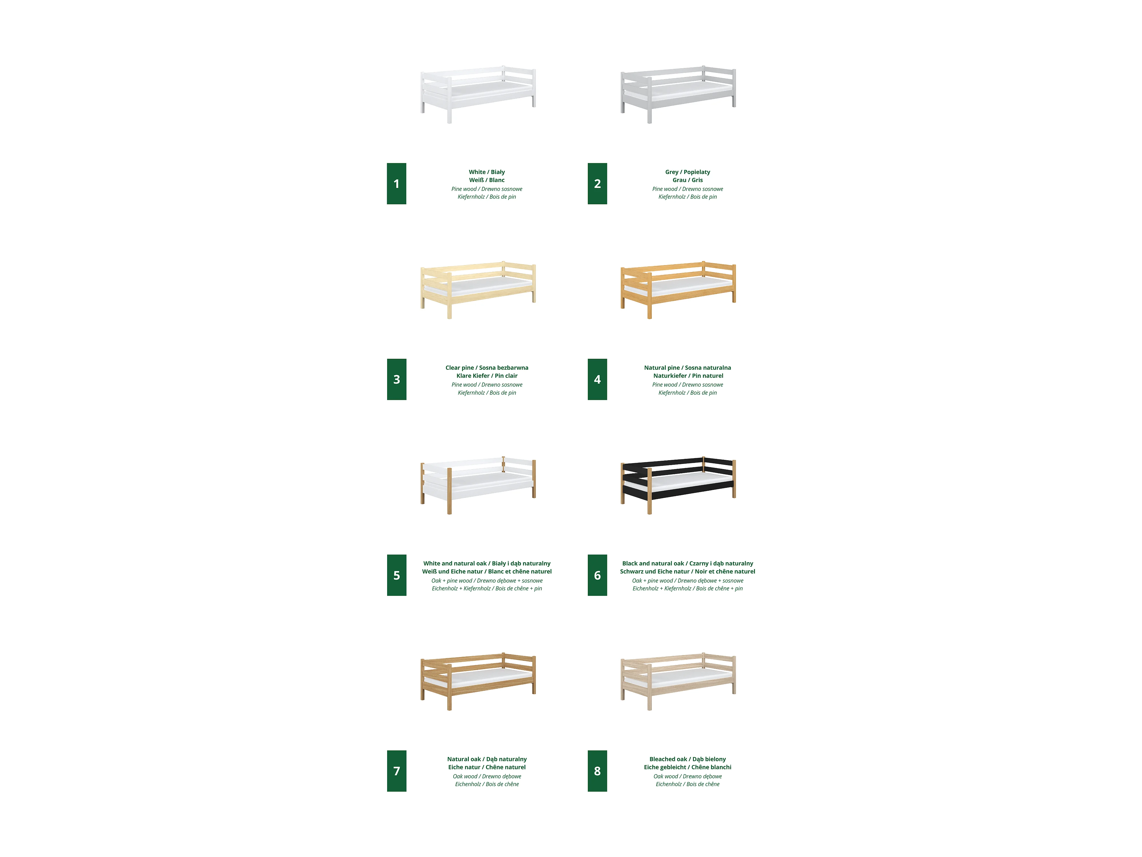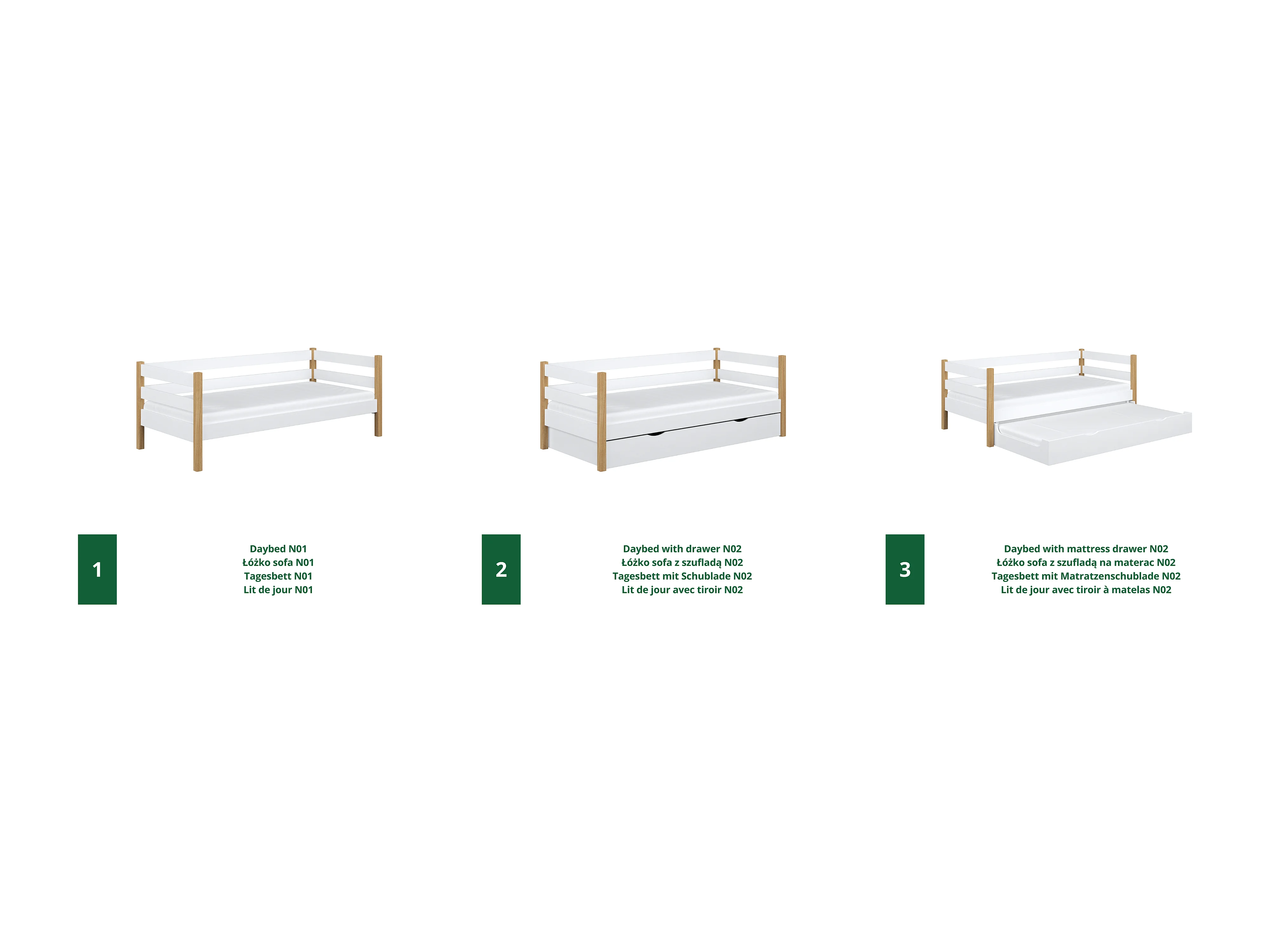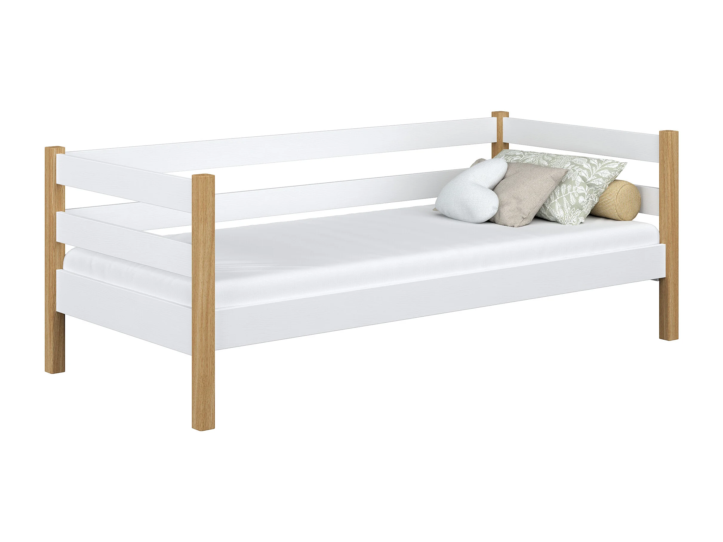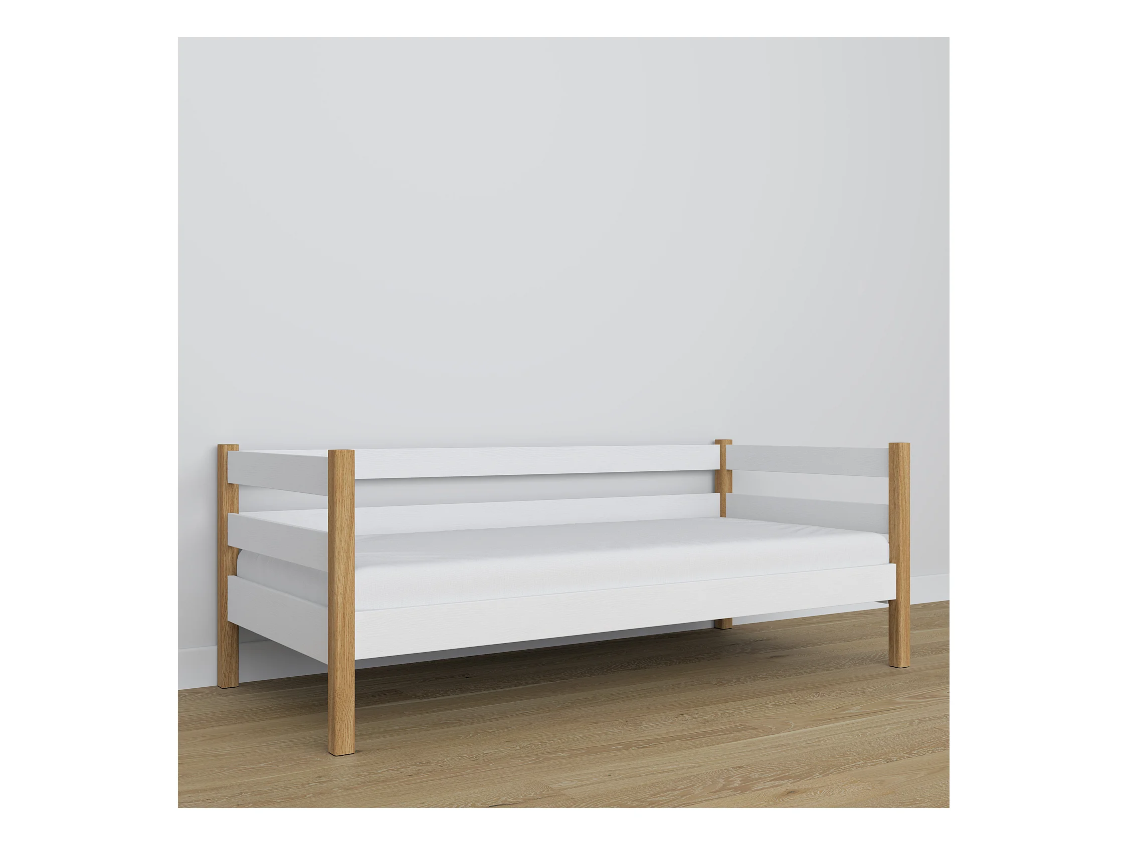 Lit banquette en bois N01 Blanc / Chêne Naturel 90x190