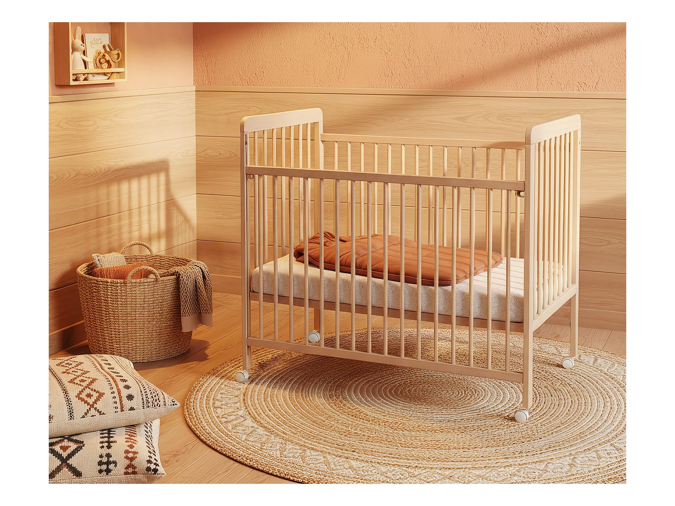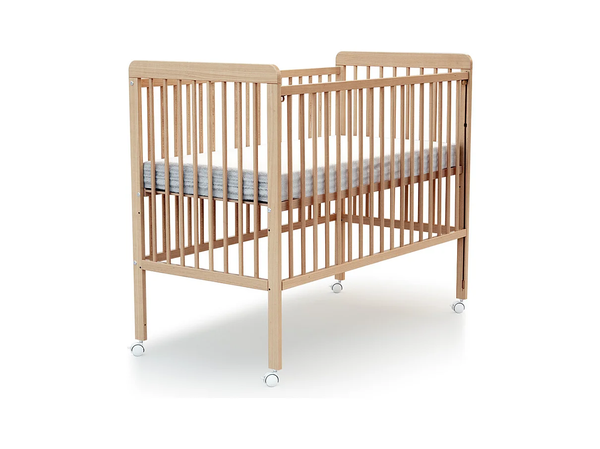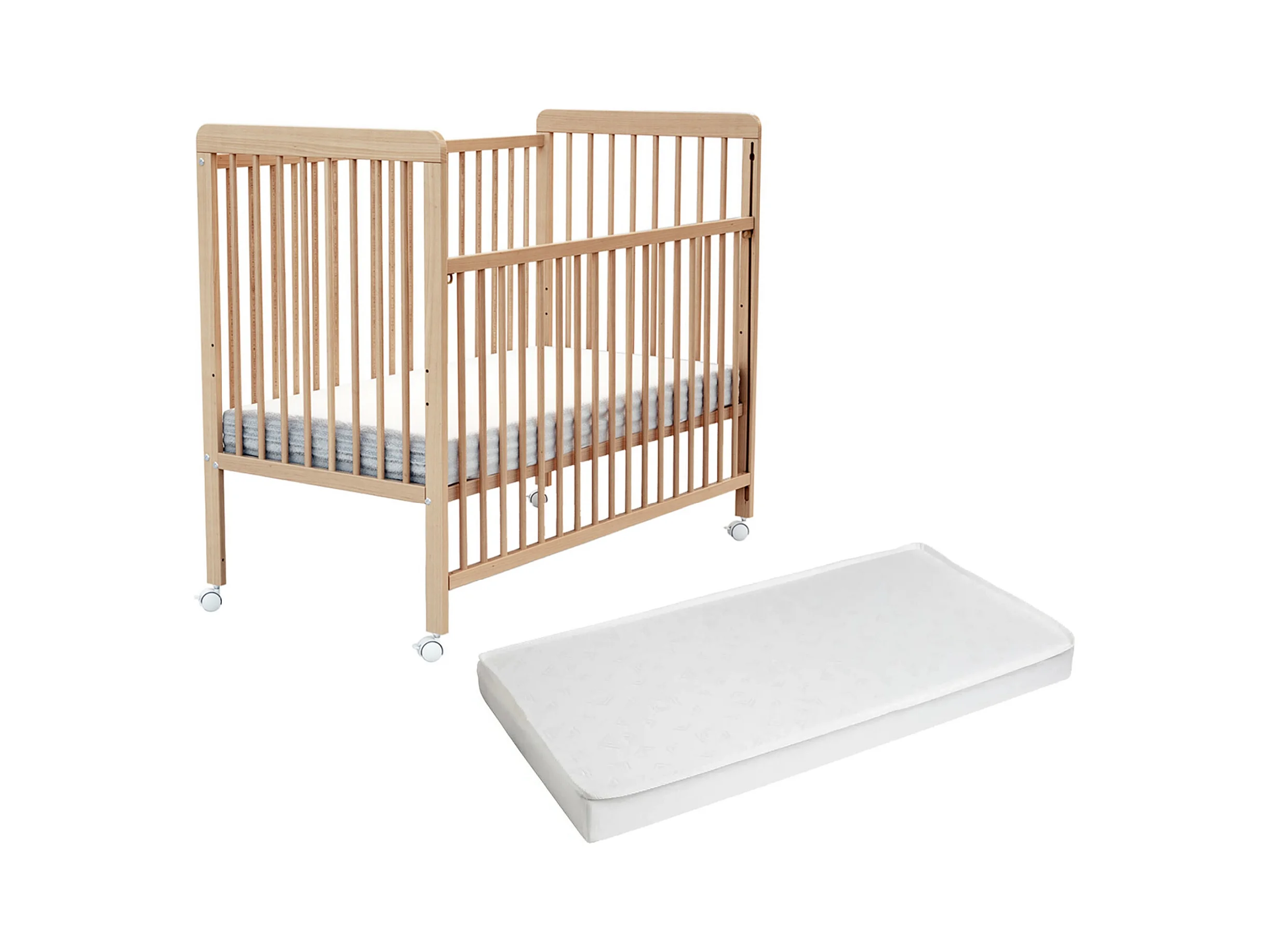 Lit bébé coulissant en bois avec matelas en bois ESSENTIEL Hêtre Verni