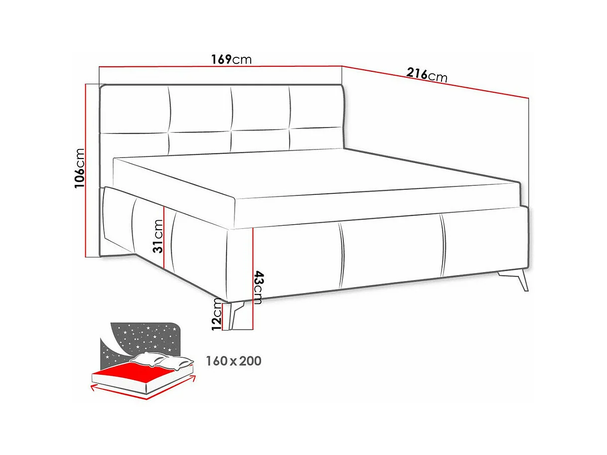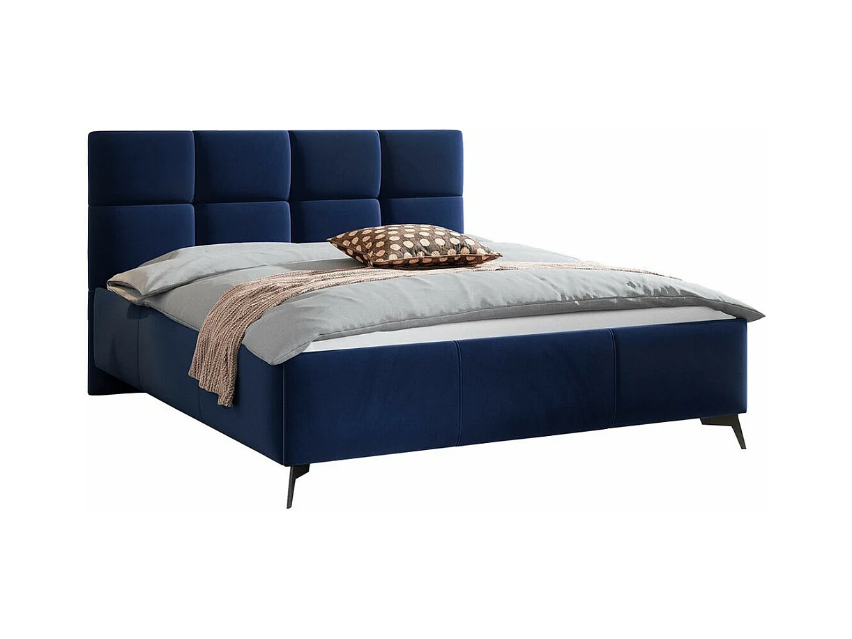 Lit ComfiDream 172, Double, Bleu, 160x200, Tapisserie, Sommier à lattes, 169x216x106cm