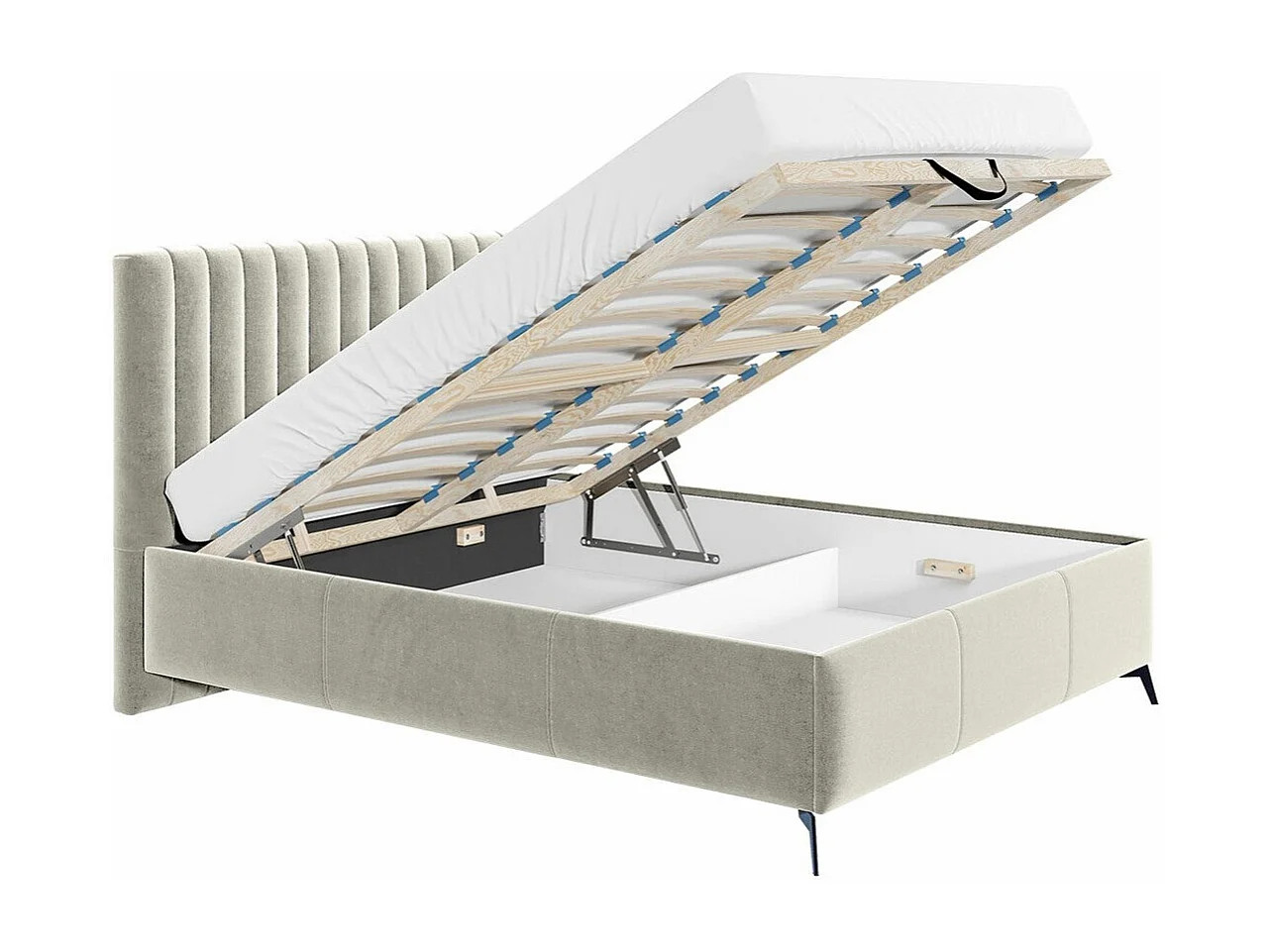 Lit ComfiDream 173, Double, Brun clair, 140x200, Tapisserie, Sommier à lattes, 149x216cm