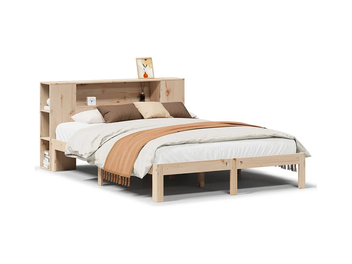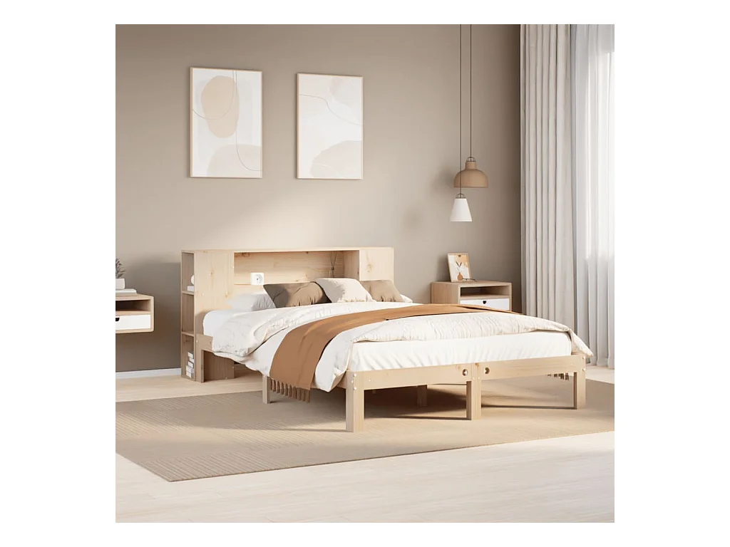 Lit bibliothèque sans matelas 150x200 cm bois massif de pin