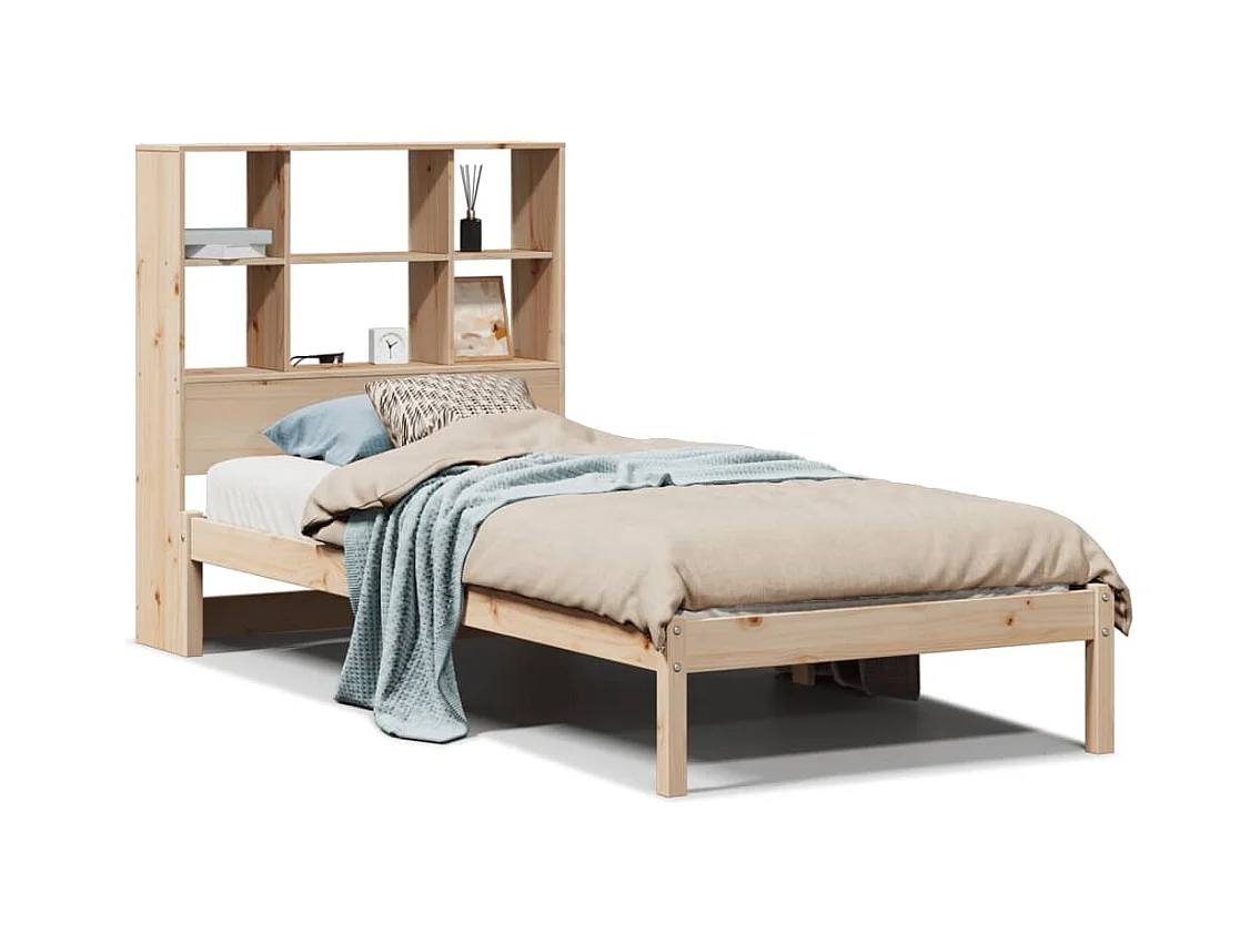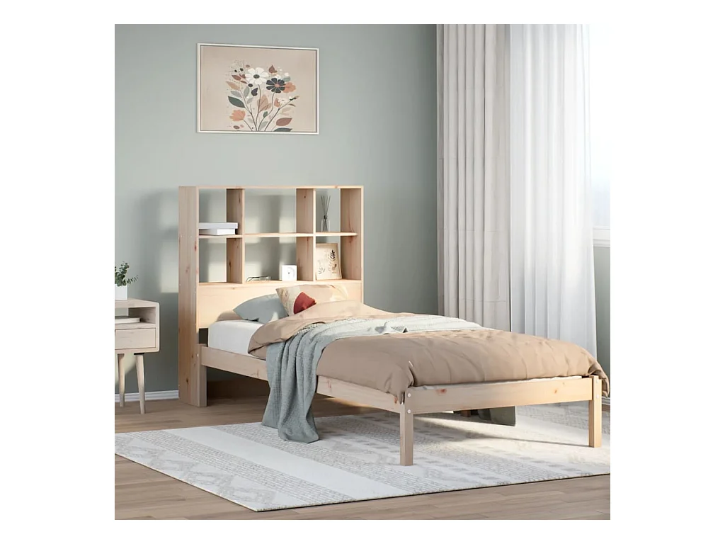 Bed met boekenkast zonder matras massief grenenhout 90x190 cm
