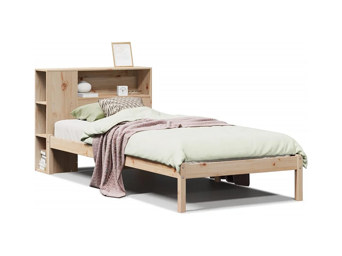 Bed met boekenkast zonder matras massief grenenhout 90x190 cm
