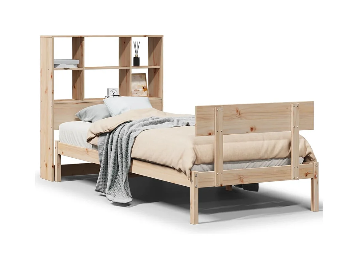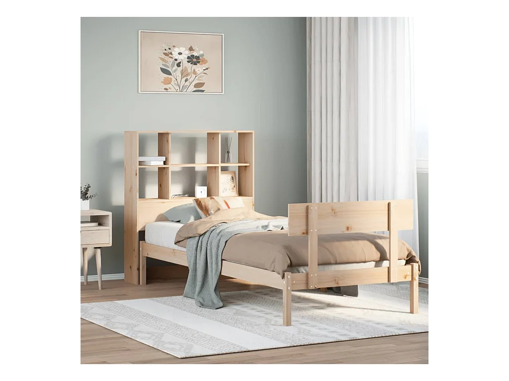 Lit bibliothèque sans matelas 90x200 cm bois de pin massif