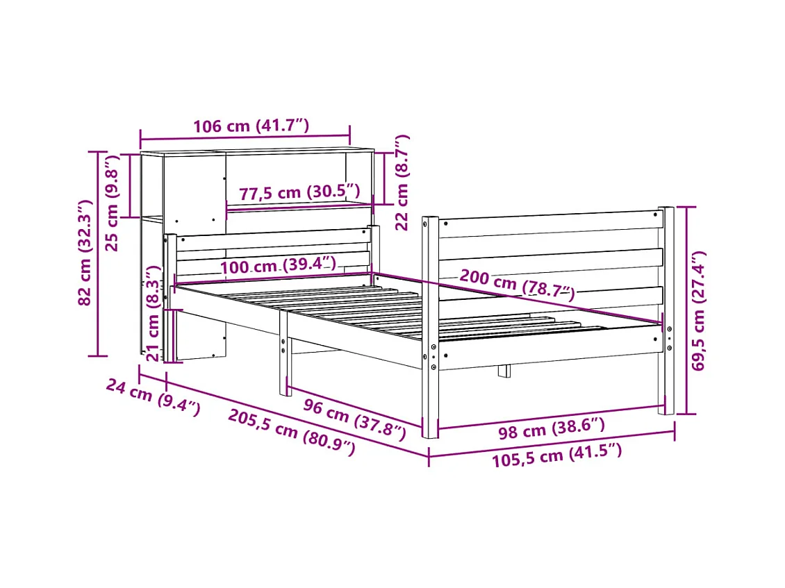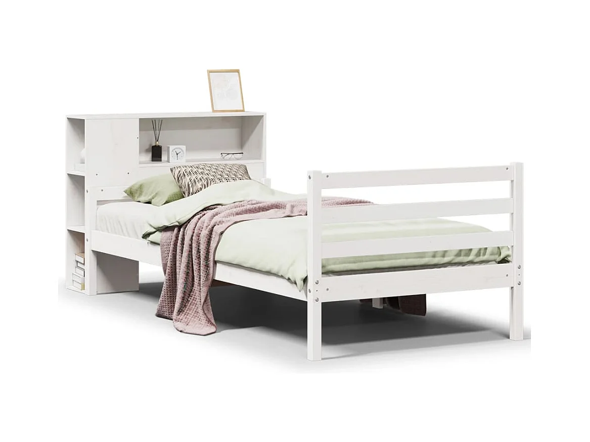 Lit bibliothèque sans matelas blanc 100x200 cm bois pin massif
