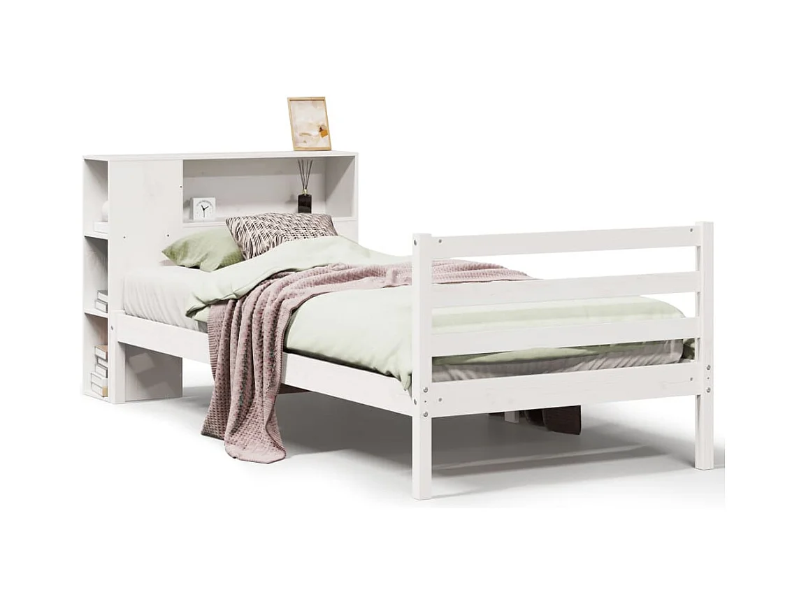Lit bibliothèque sans matelas blanc 100x200 cm bois pin massif