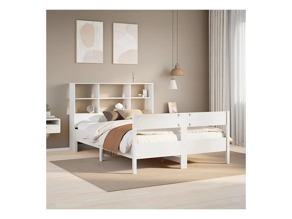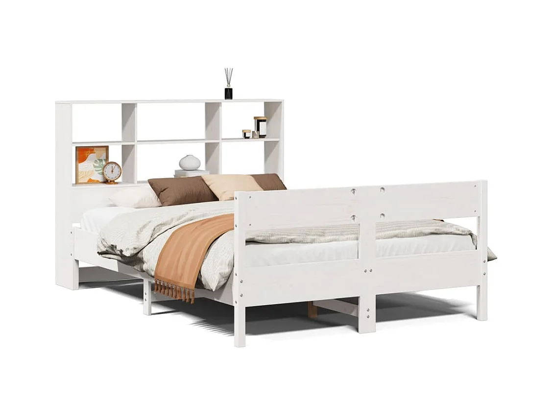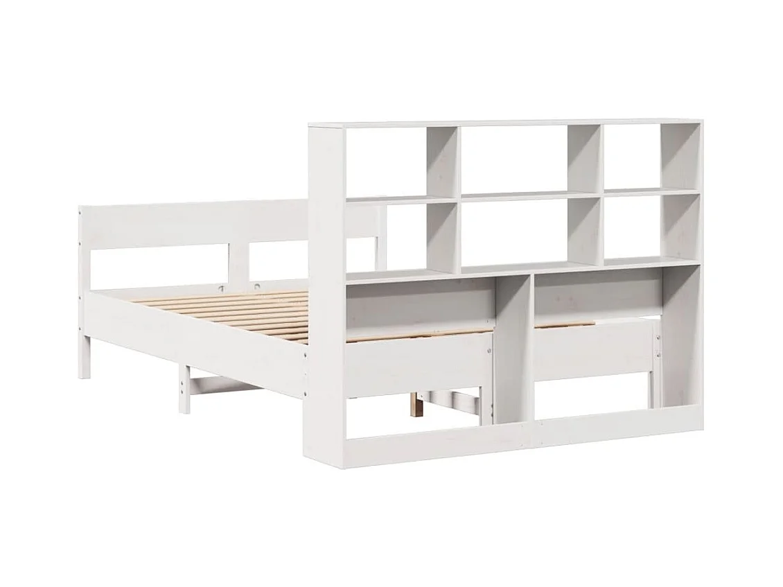 Lit bibliothèque sans matelas blanc 140x200 cm bois pin massif