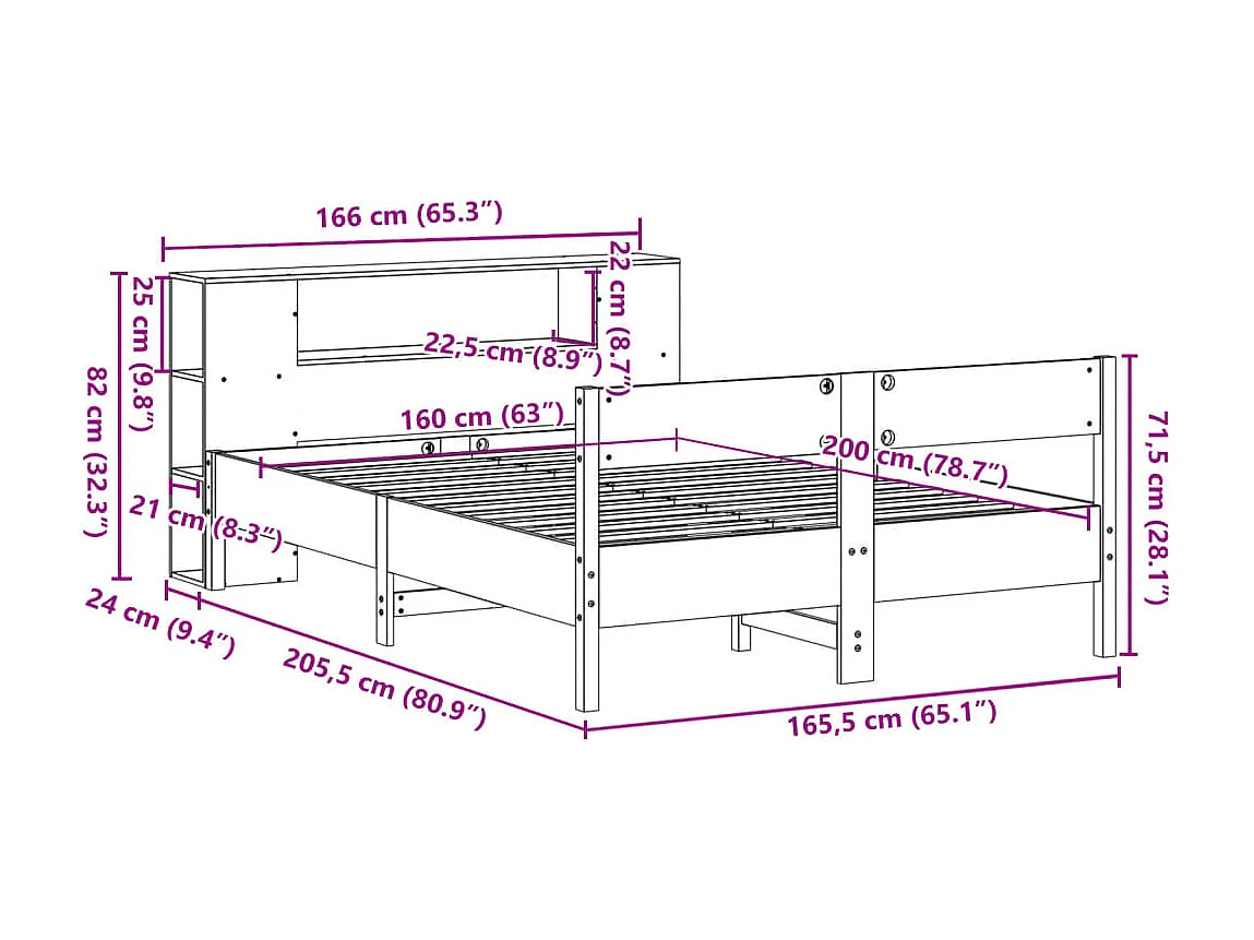 Lit bibliothèque sans matelas blanc 160x200 cm bois pin massif