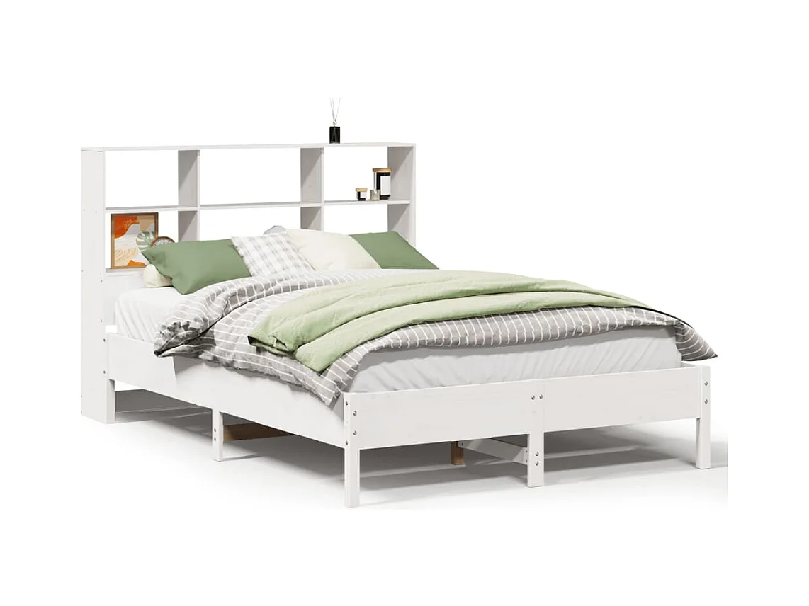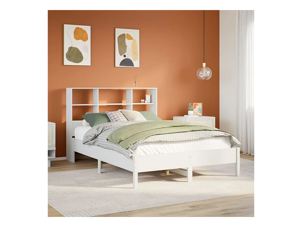 Lit bibliothèque sans matelas blanc 160x200 cm bois pin massif