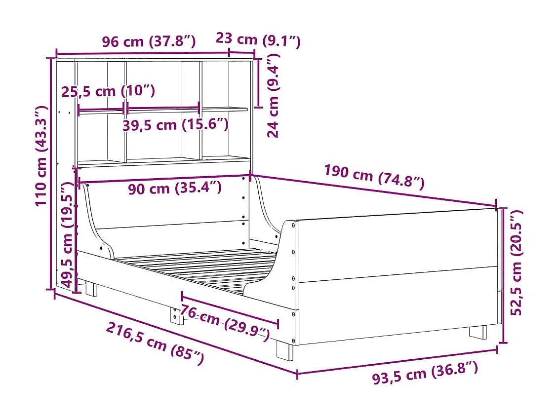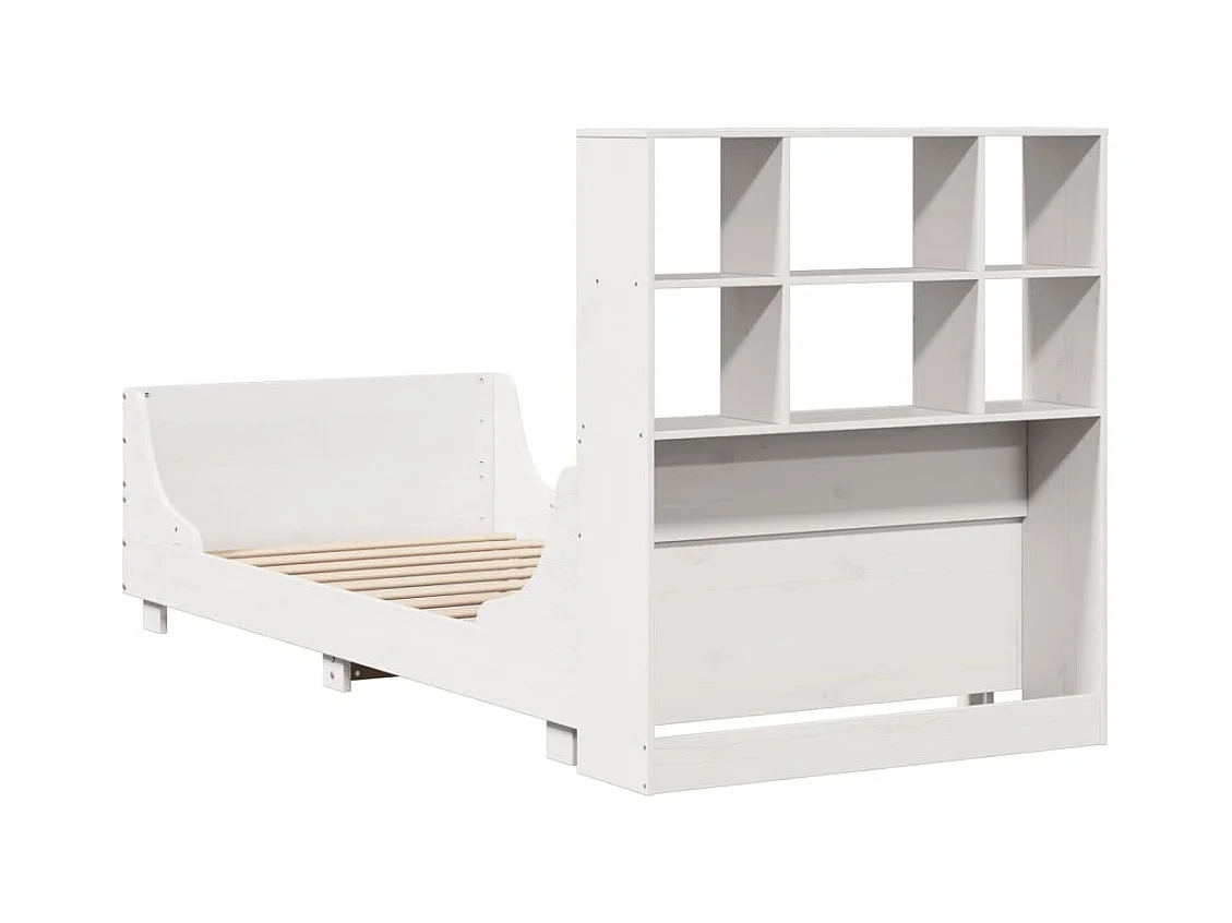 Lit bibliothèque sans matelas blanc 90x190 cm bois massif