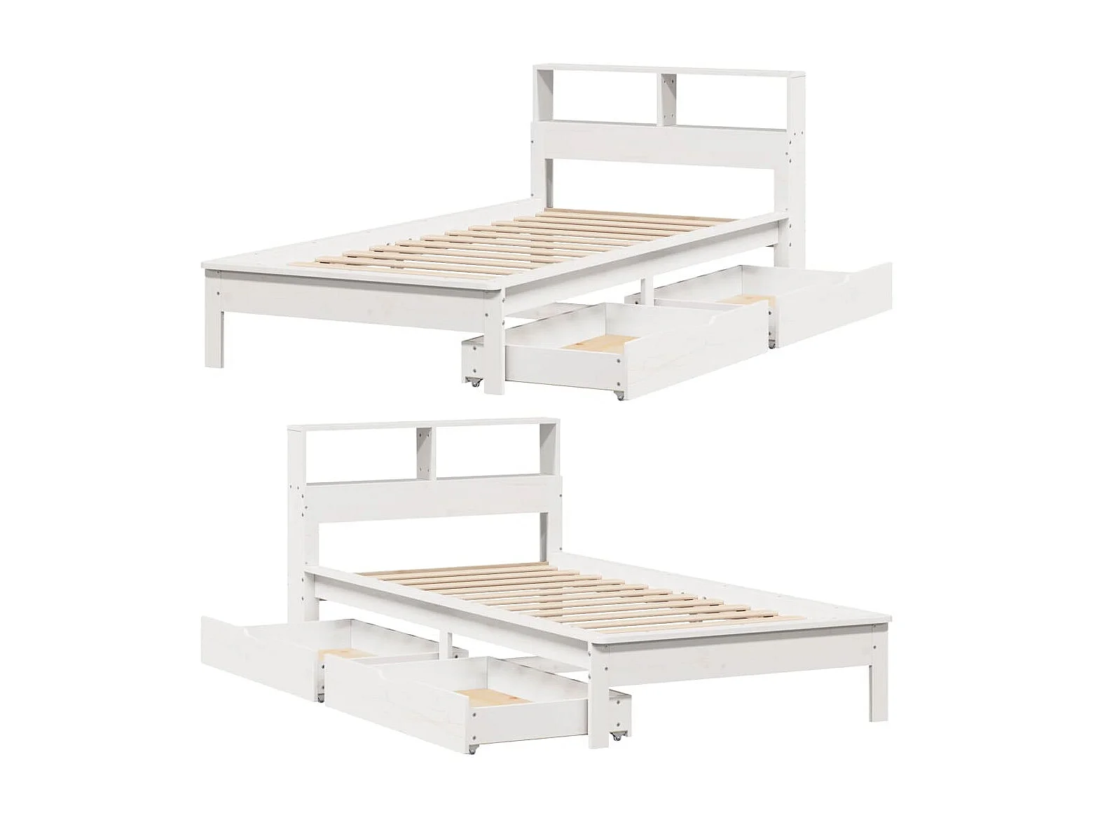 Lit bibliothèque sans matelas blanc 90x190cm bois de pin massif