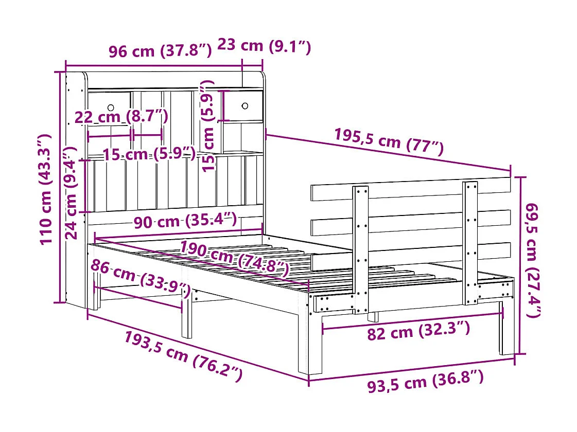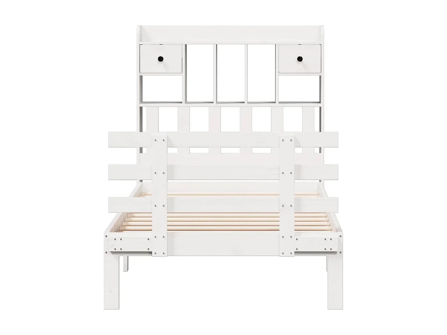 Lit bibliothèque sans matelas blanc 90x190cm bois de pin massif