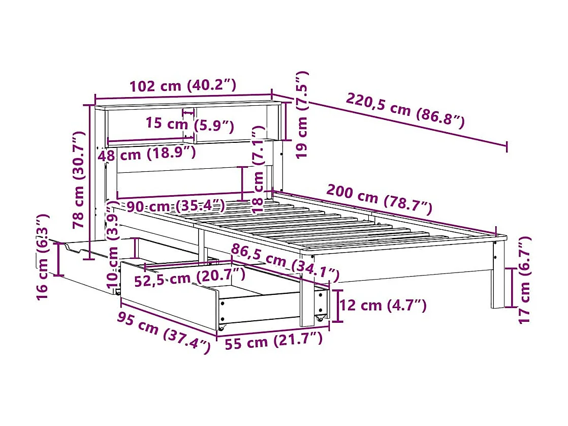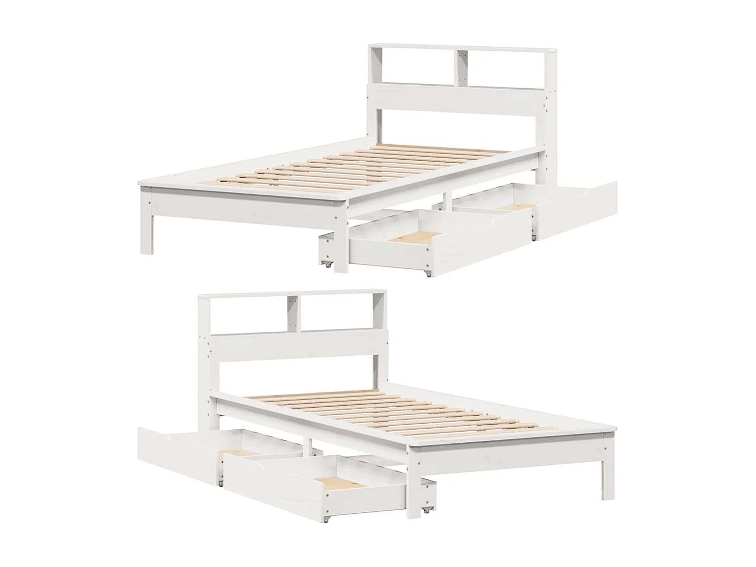 Lit bibliothèque sans matelas blanc 90x200cm bois de pin massif