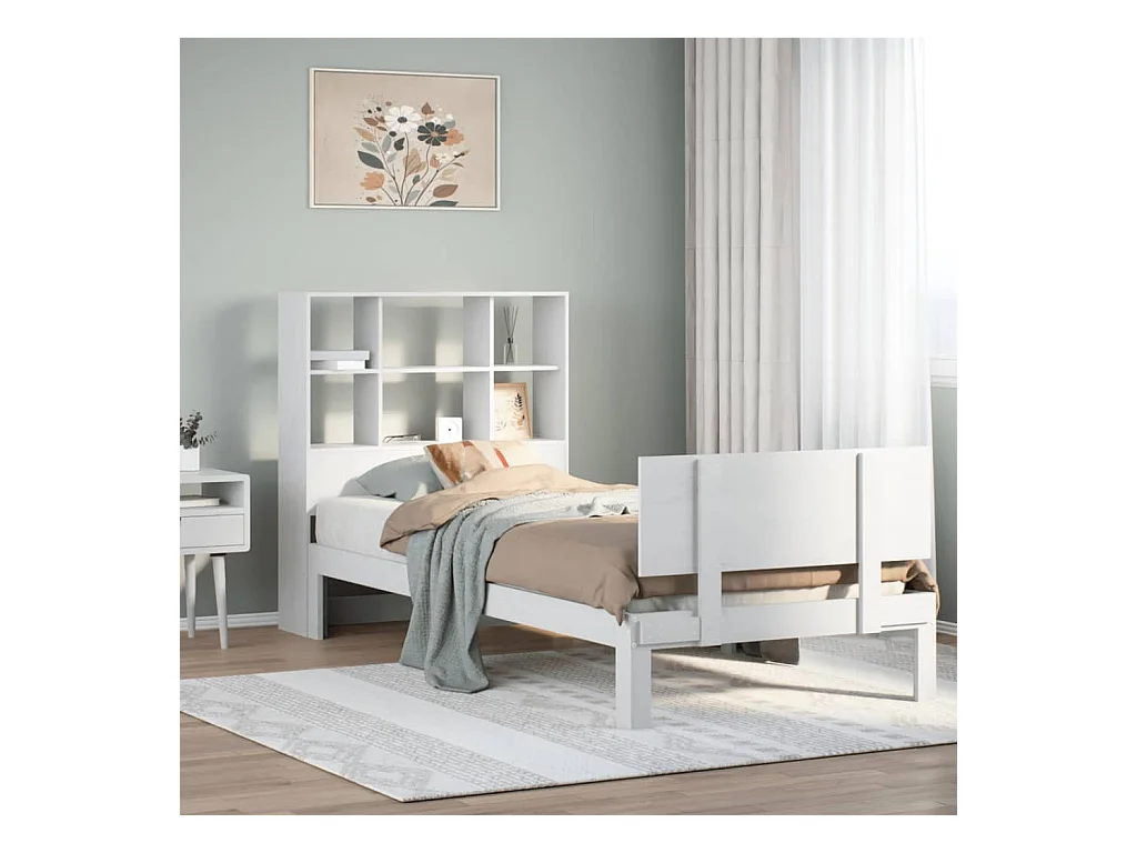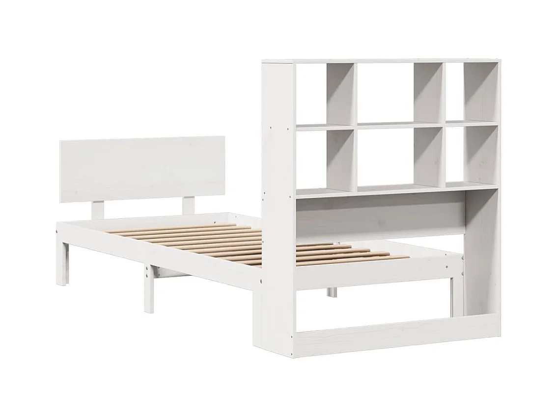 Lit bibliothèque sans matelas blanc 90x200cm bois de pin massif