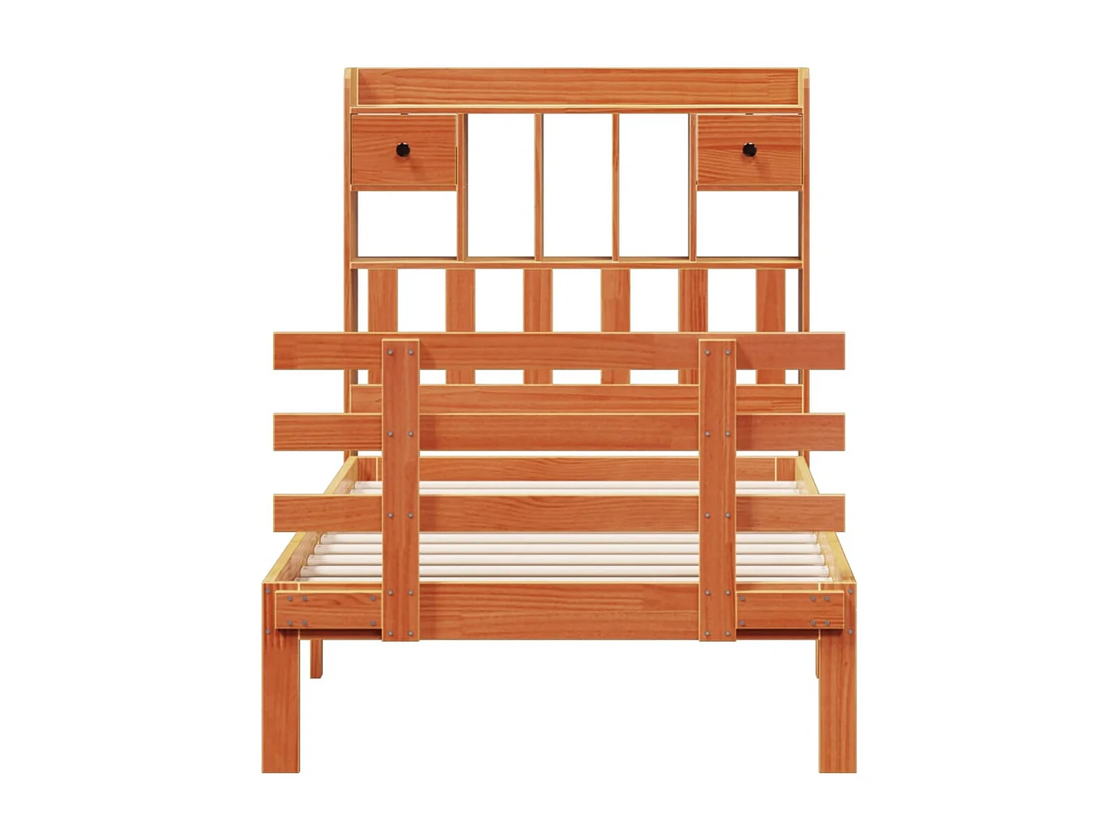 Lit bibliothèque sans matelas cire marron 100x200 cm pin massif