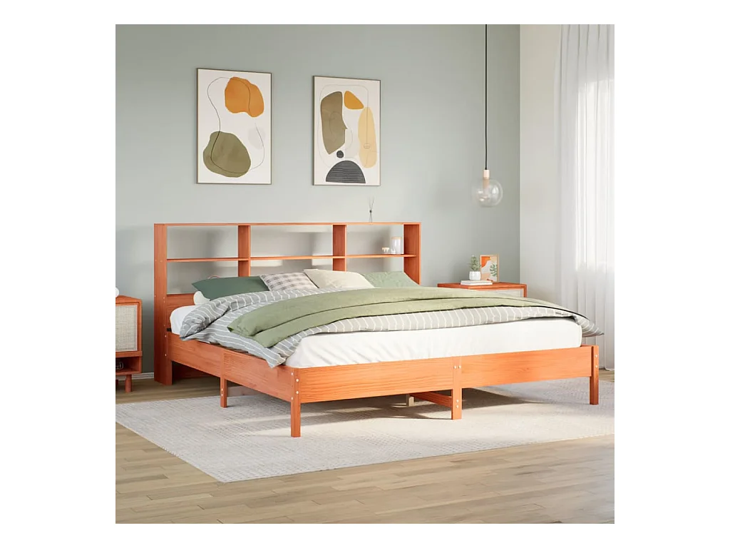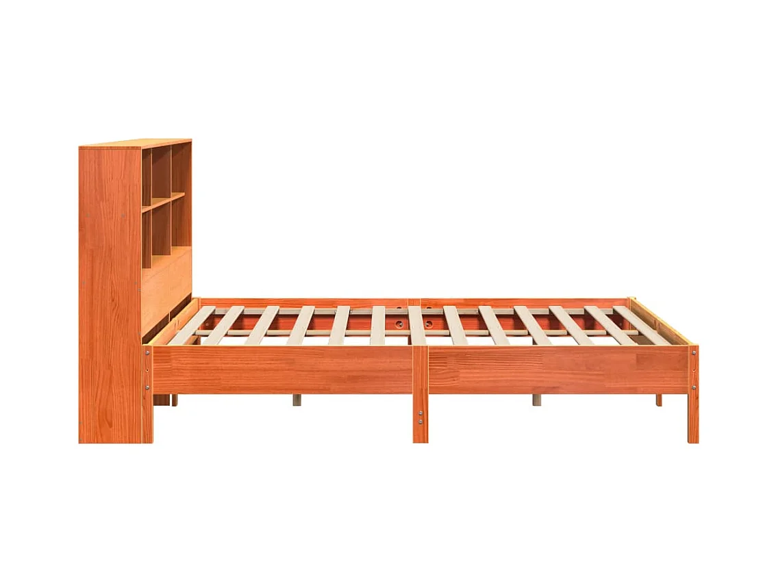 Lit bibliothèque sans matelas cire marron 200x200 cm pin massif