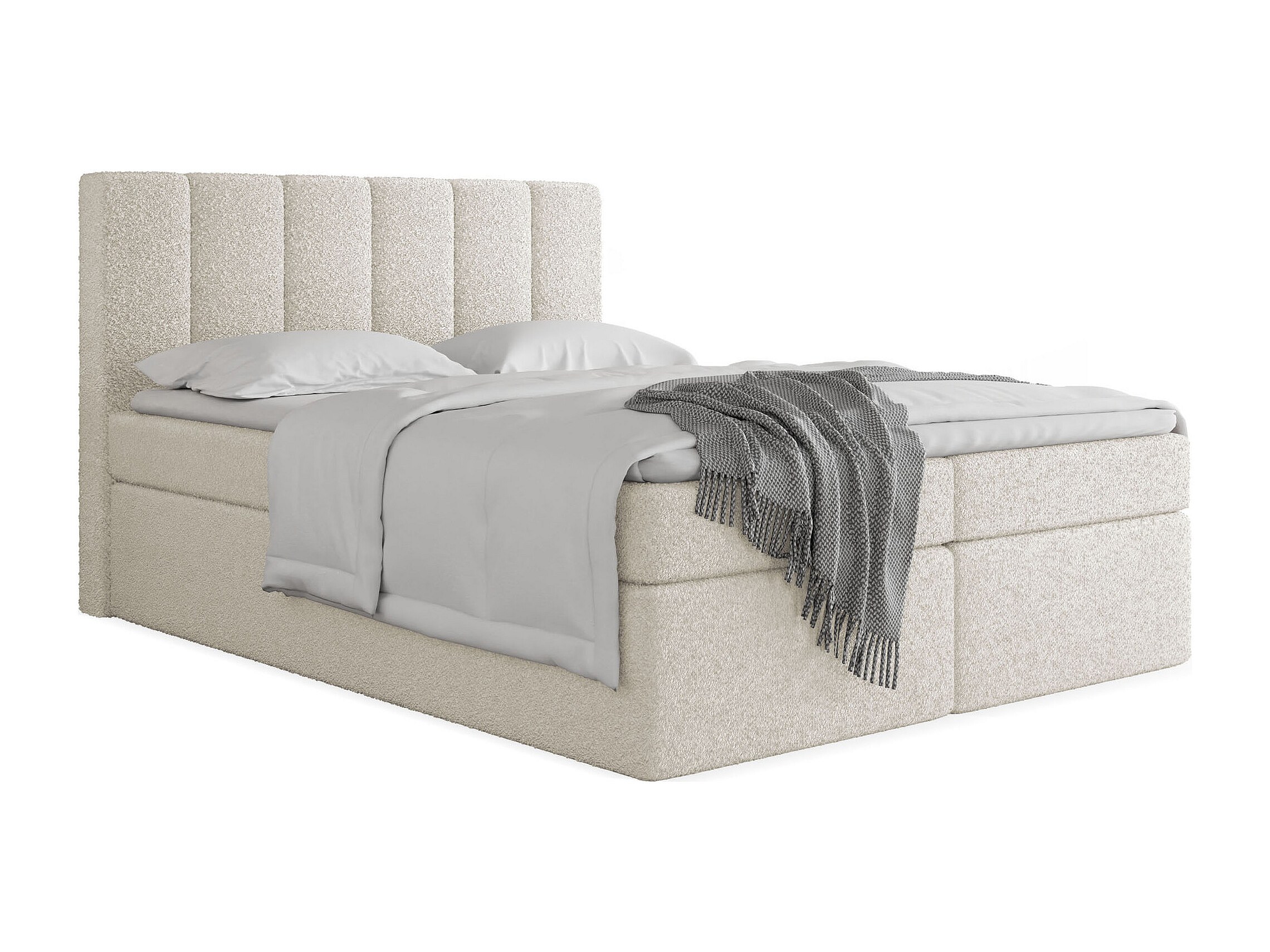 Lit Boxspring Amira 120x200 avec Matelas, Surmatelas et Coffre – Lit Coffre Tissu Bouclette Blanc – Tête Capitonnée – Lit Double Adulte – Crème