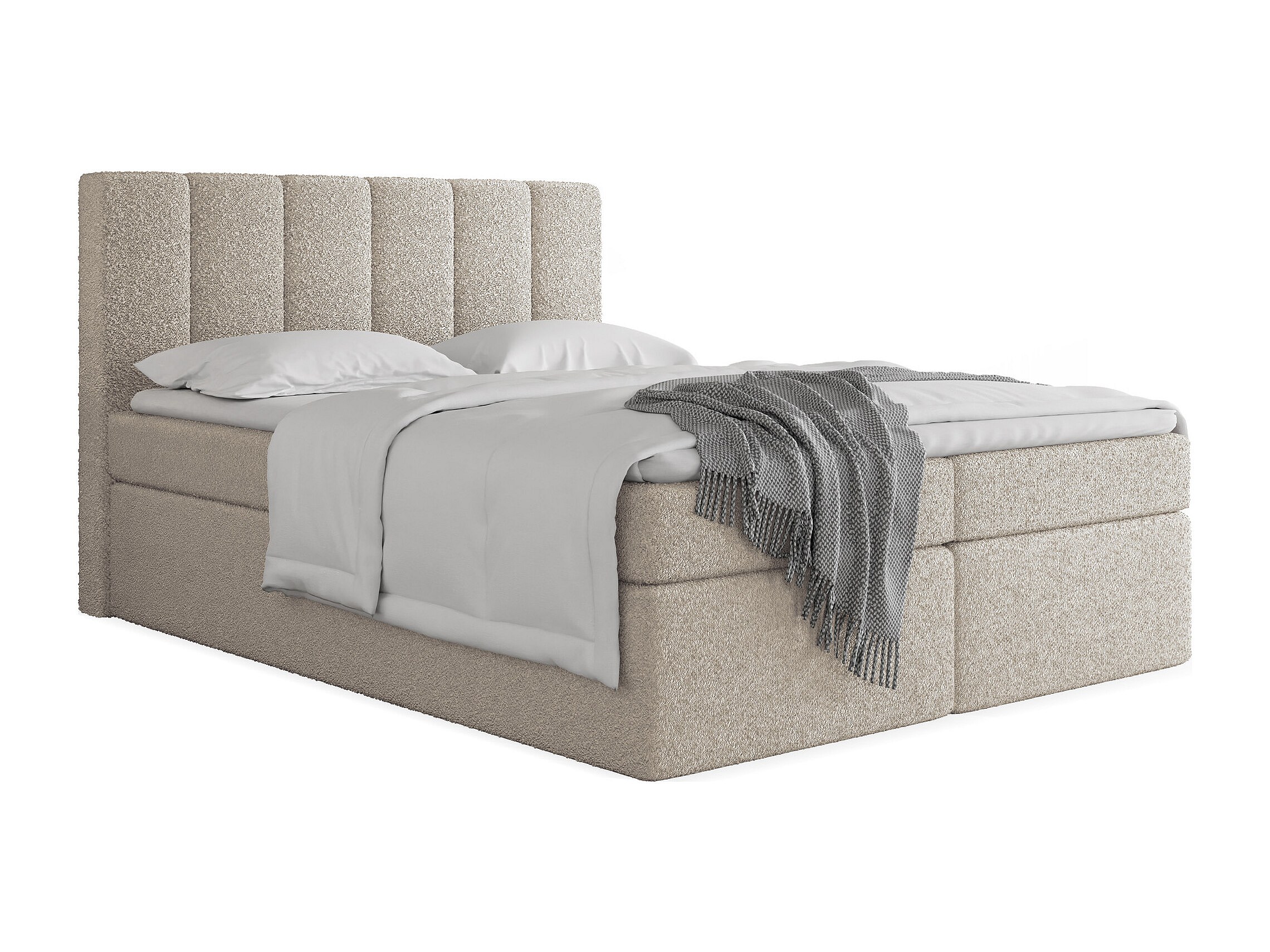 Lit Boxspring Amira 180x200 avec Matelas, Surmatelas et Coffre – Lit Coffre Tissu Bouclette Beige – Tête Capitonnée – Lit Double Adulte – Crème
