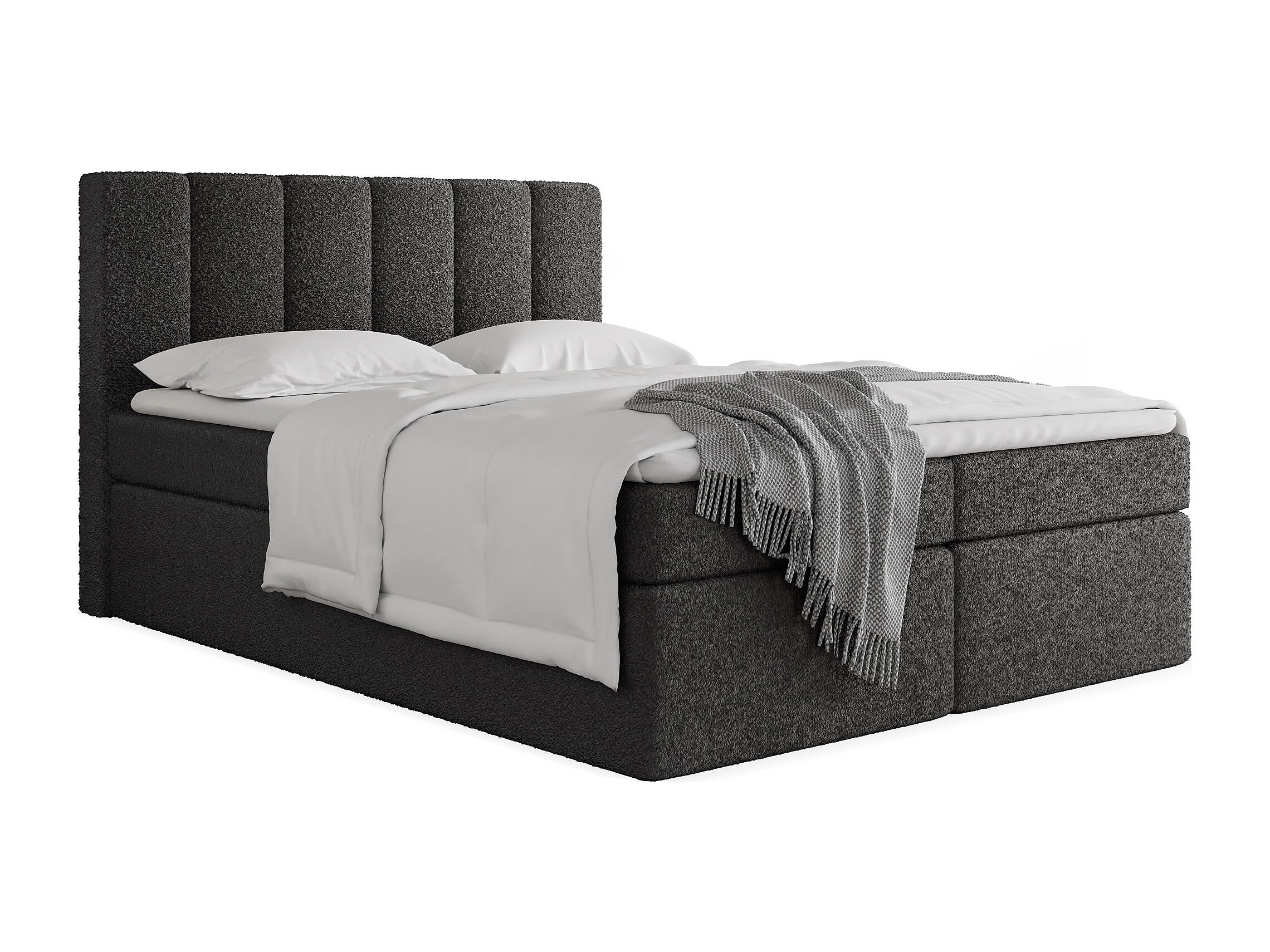 Lit Boxspring Amira 180x200 avec Matelas, Surmatelas et Coffre – Lit Coffre Tissu Bouclette – Tête Capitonnée – Lit Double Adulte – Noir