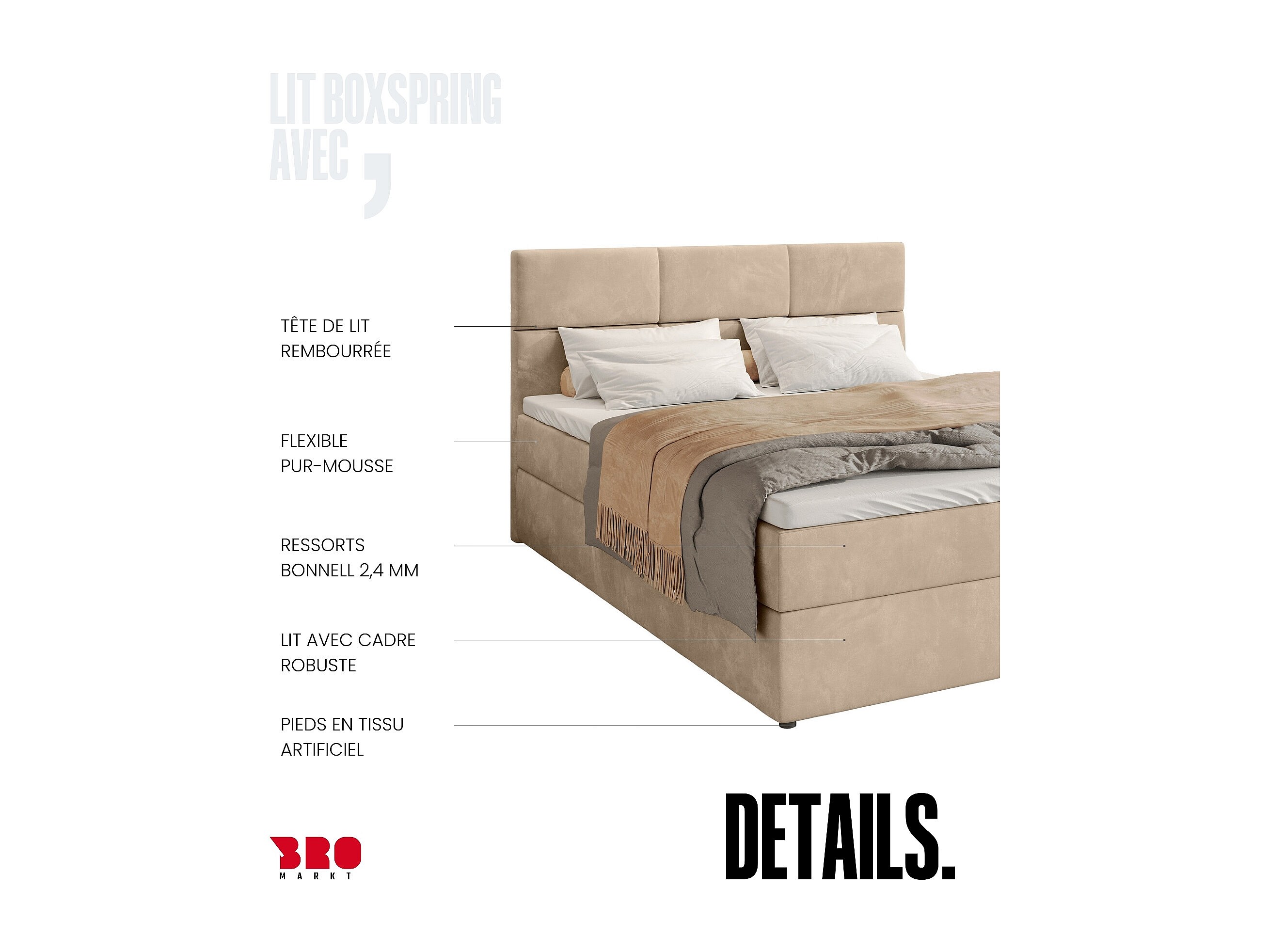 Lit boxspring avec rangement BOSTON - matelas - surmatelas - crémeux - 160x200 cm