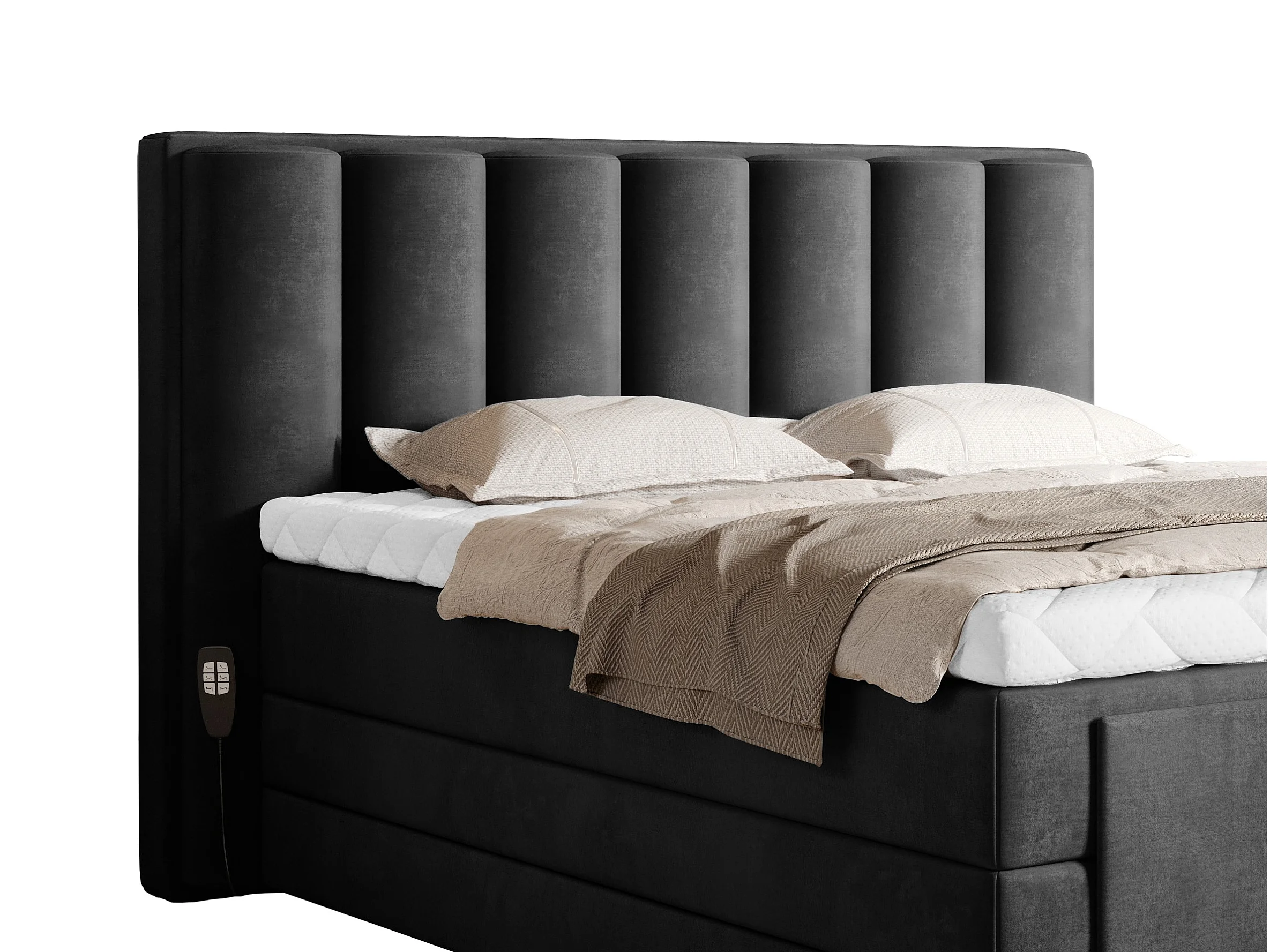 Lit boxspring électrique tissu anthracite avec matelas et surmatelas Arkos-90x200