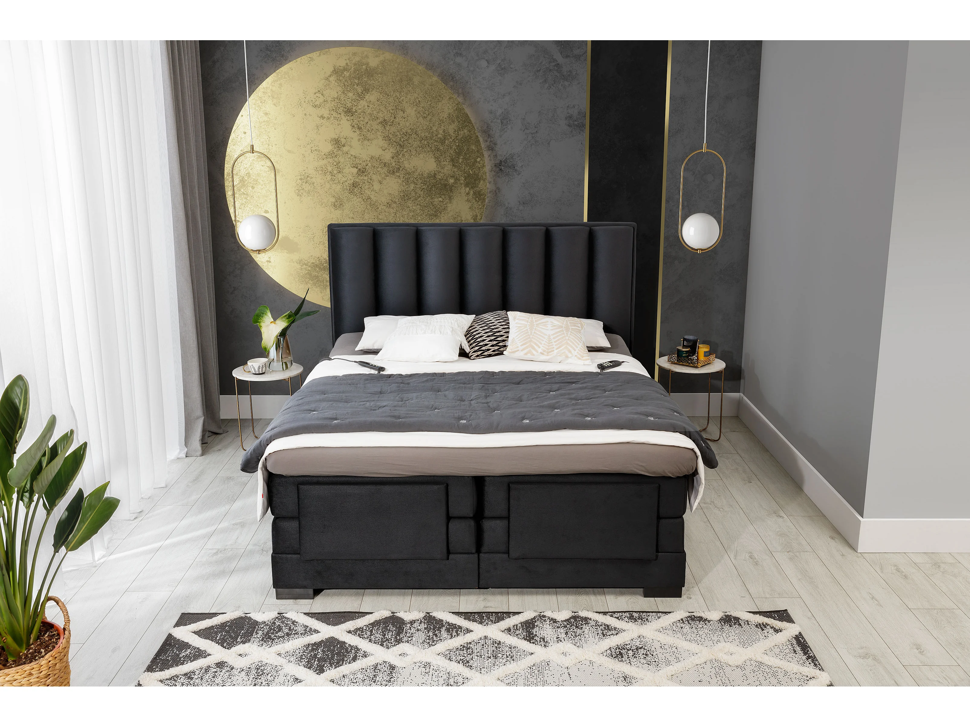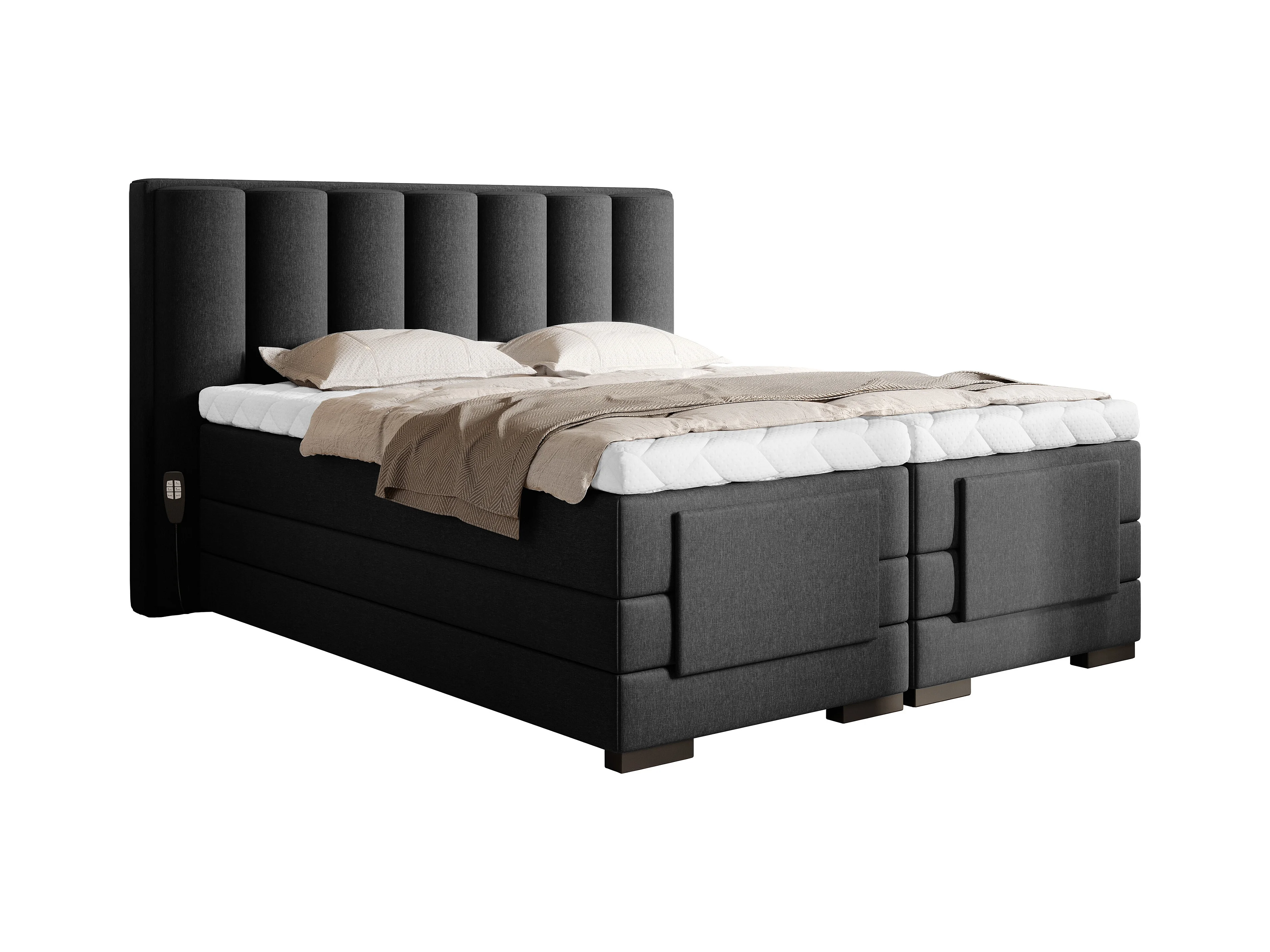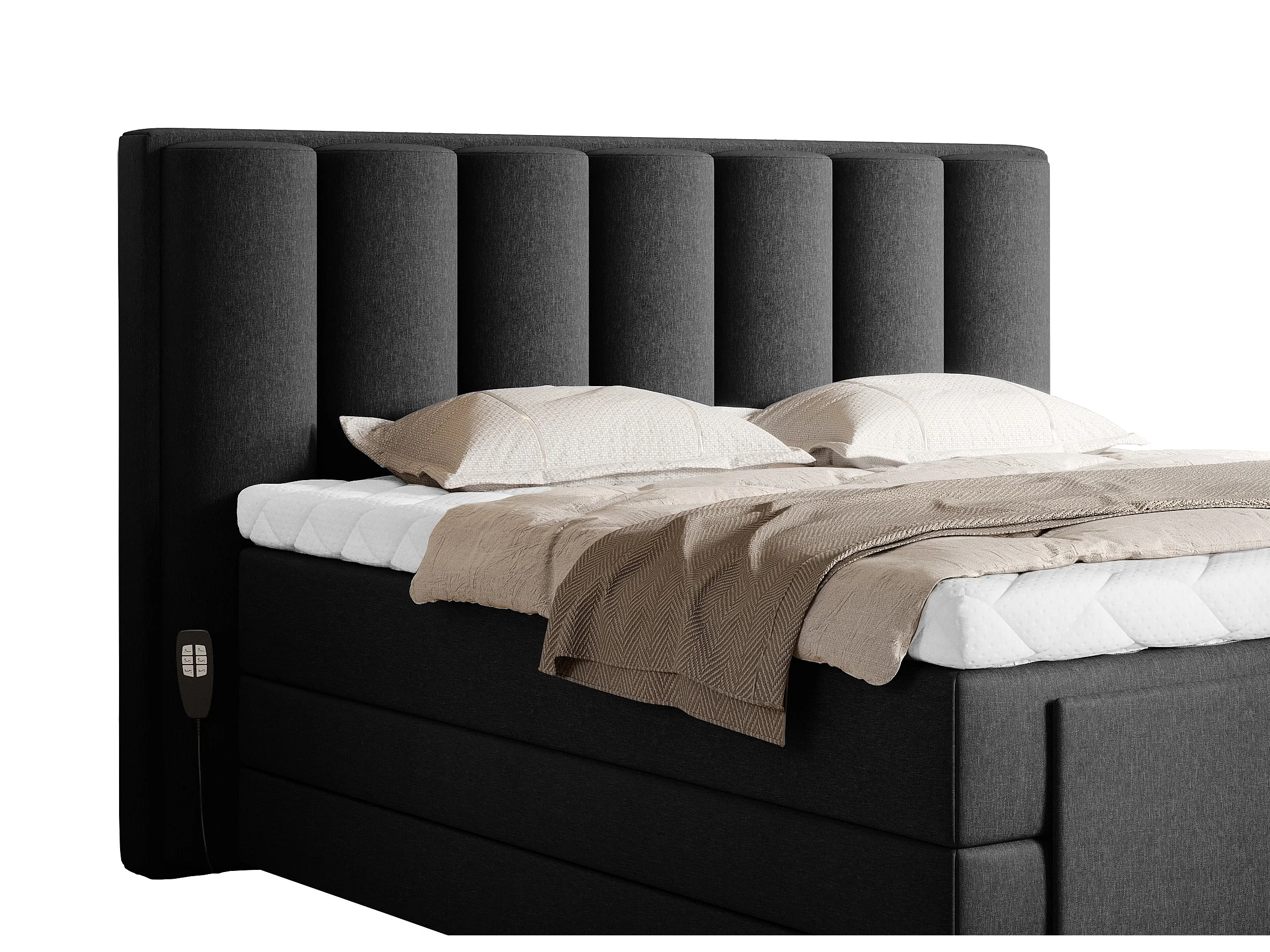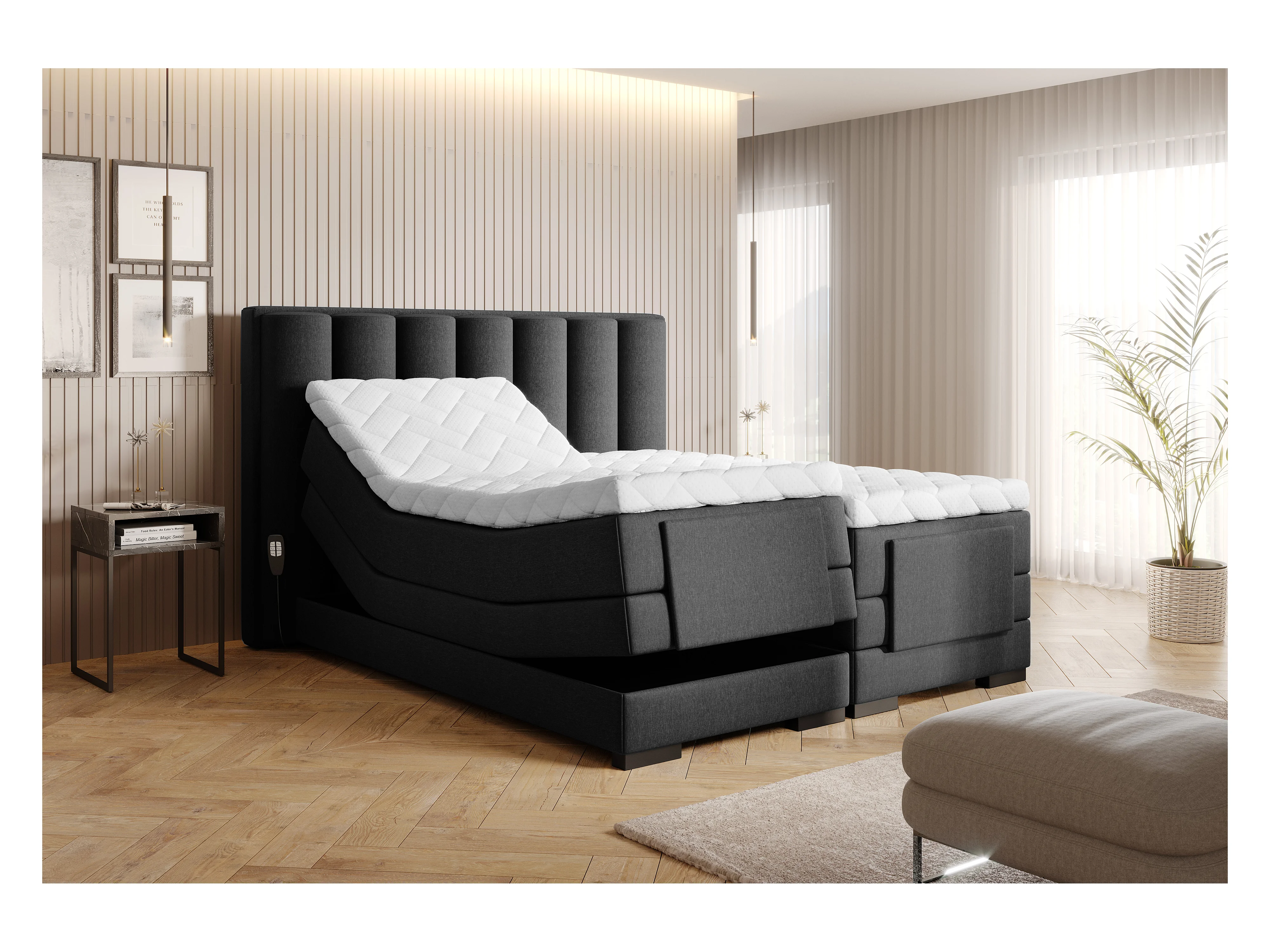 Lit boxspring électrique tissu noir avec matelas et surmatelas Arkos-90x200