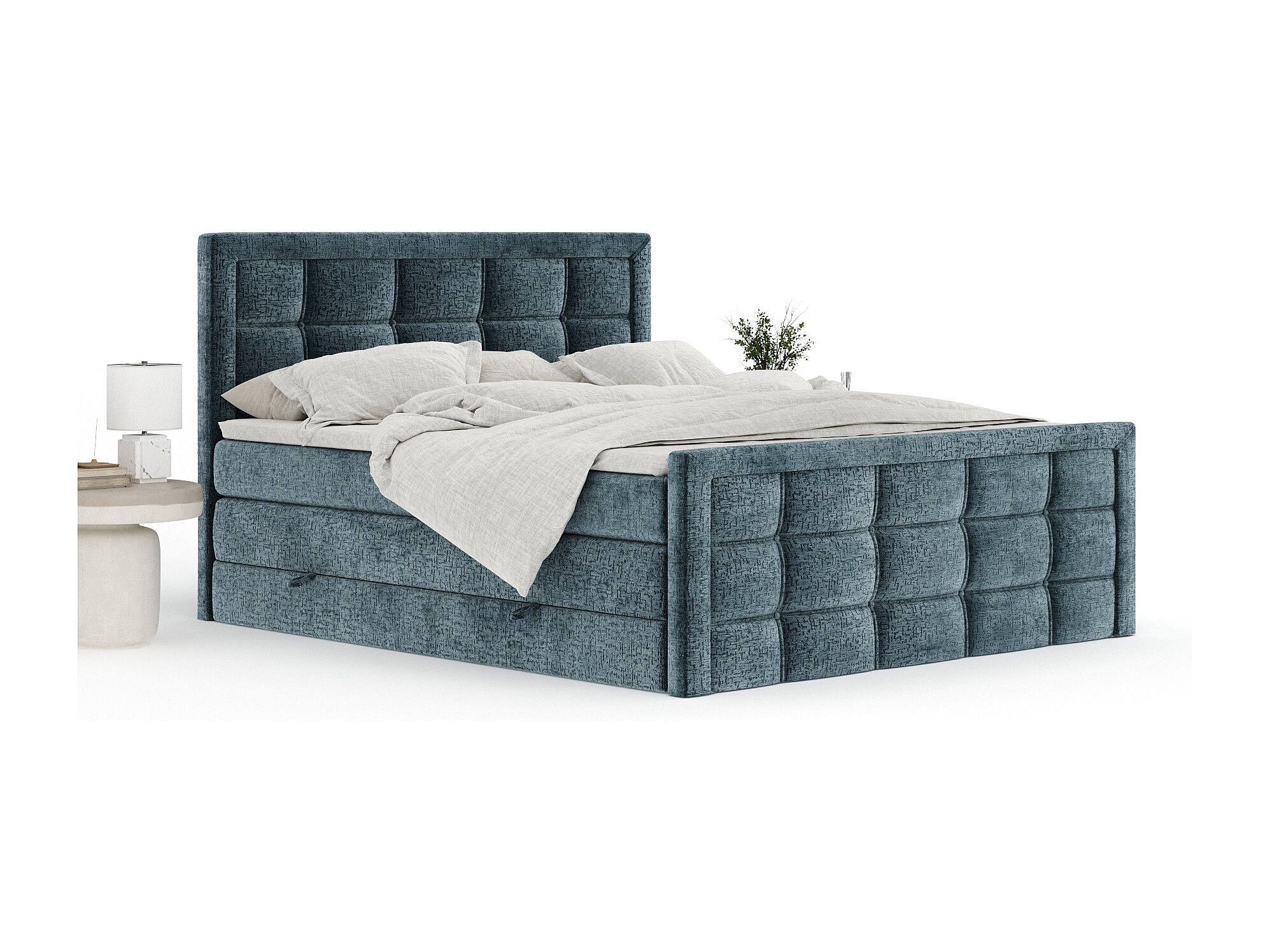 Lit boxspring en tissu chenille Ambrosia - matelas - surmatelas - 140x200 cm - bleu