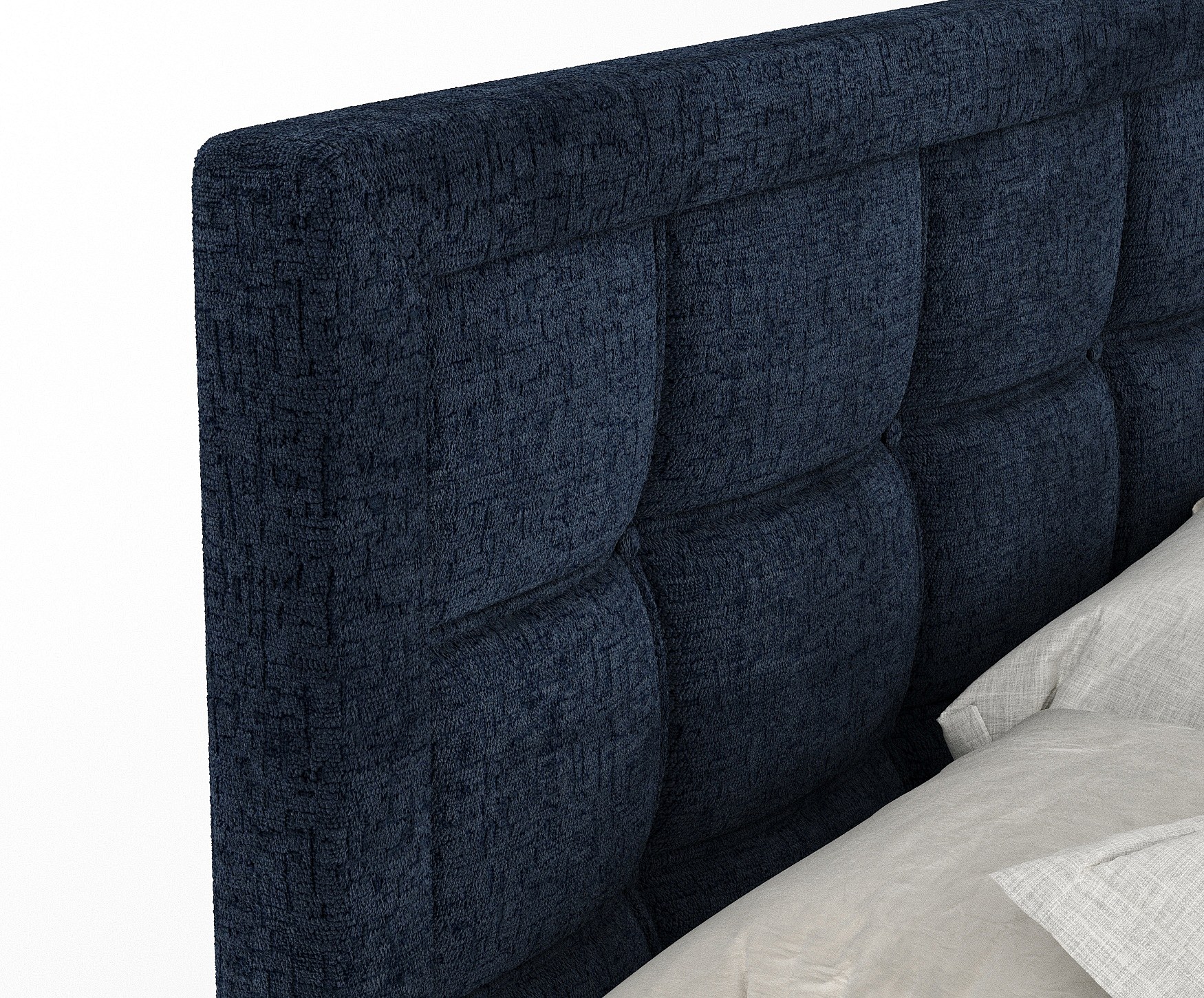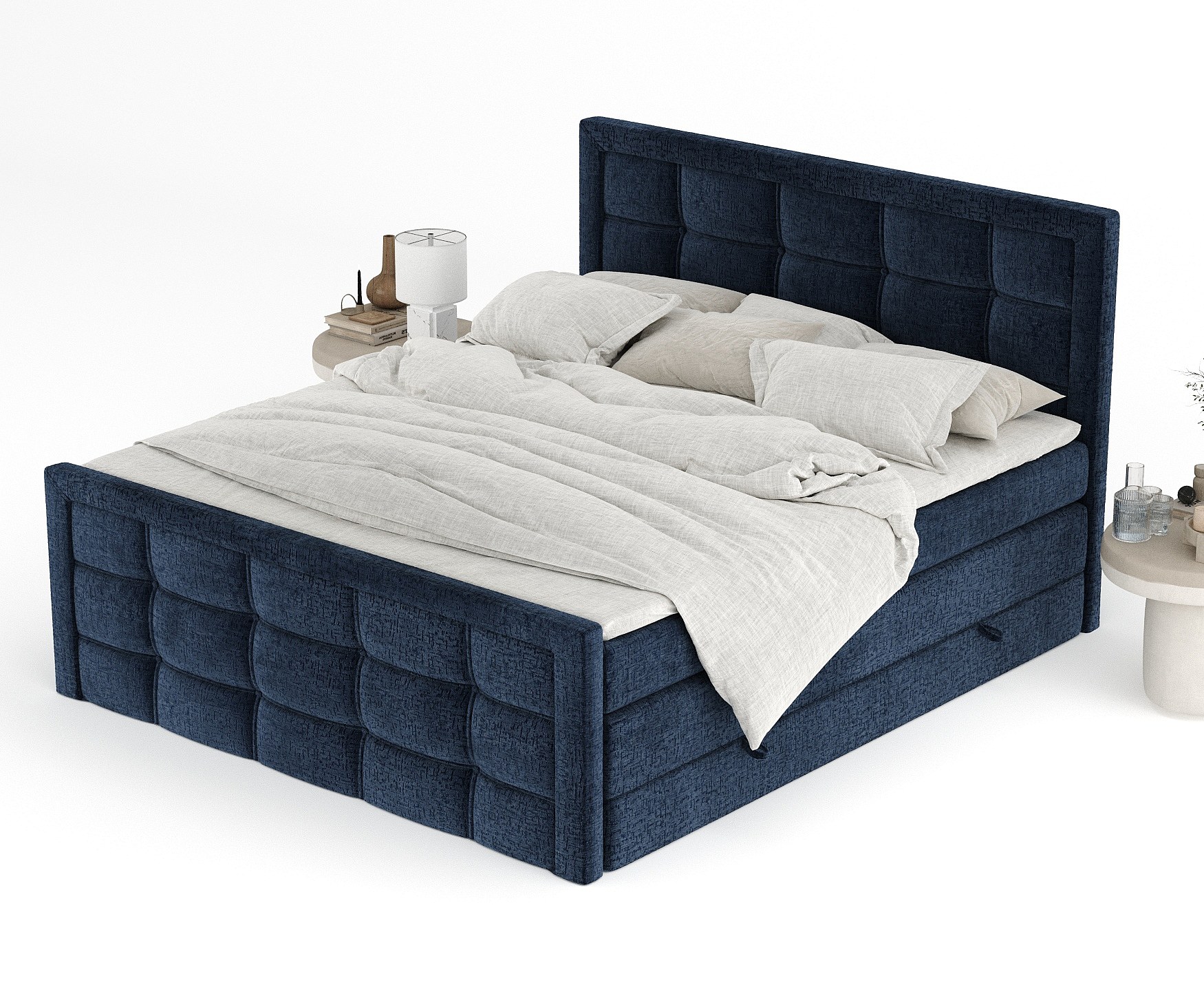 Lit boxspring en tissu chenille Ambrosia - matelas - surmatelas - 140x200 cm - bleu marine