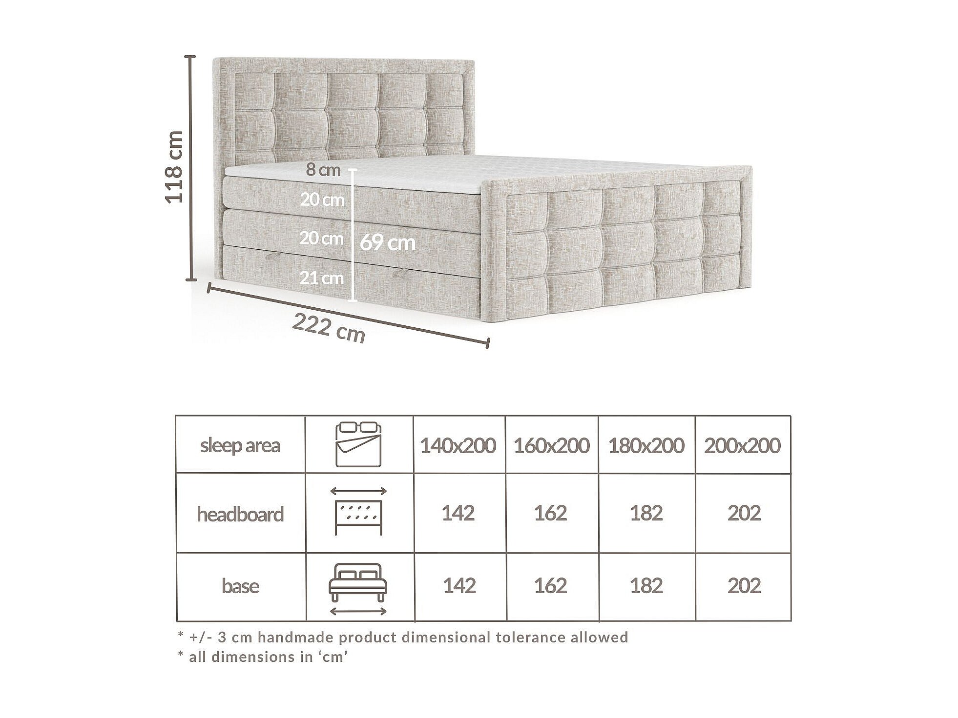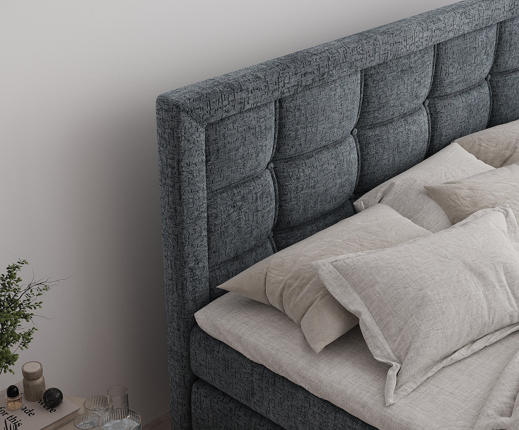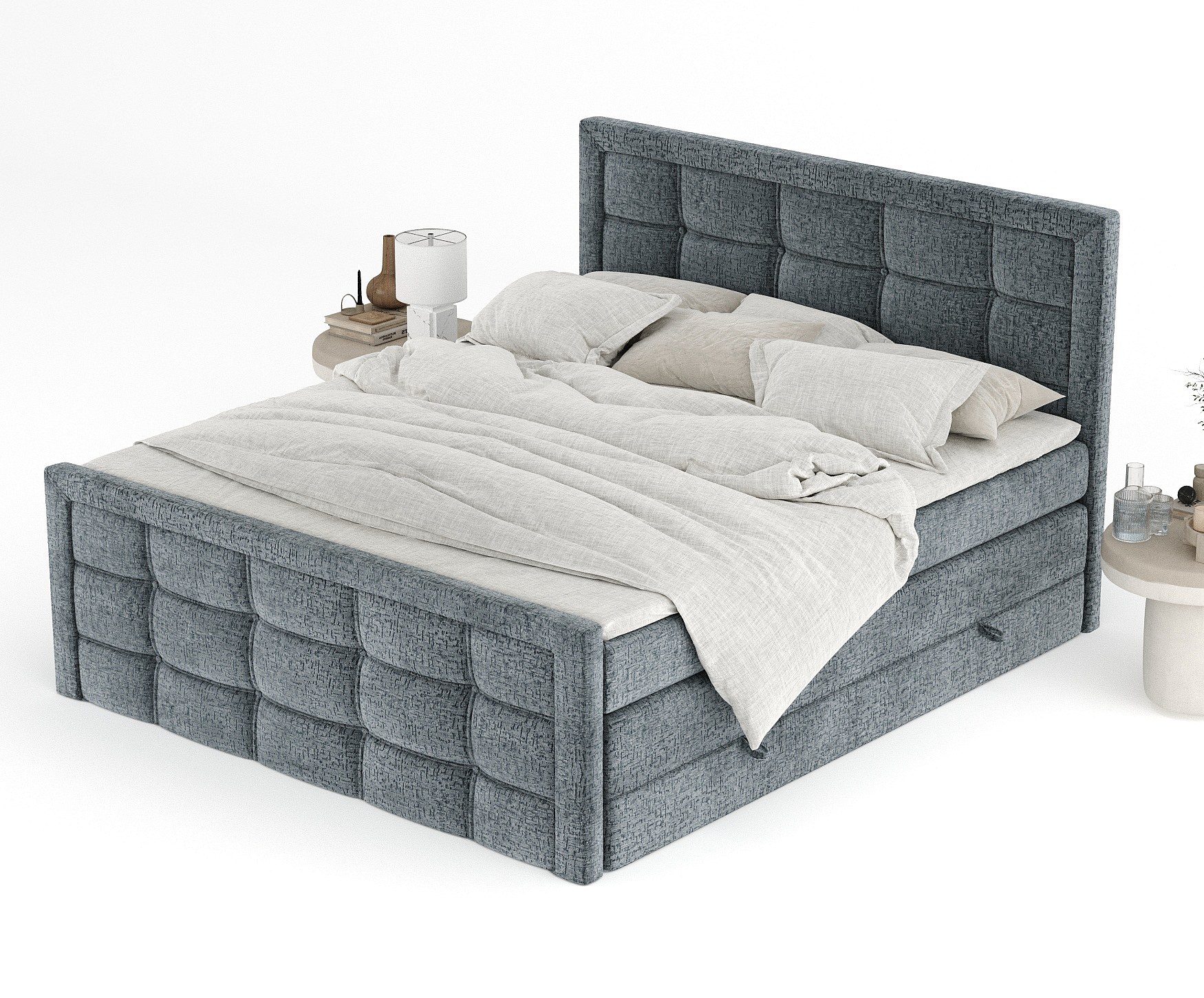 Lit boxspring en tissu chenille Ambrosia - matelas - surmatelas - 140x200 cm - gris