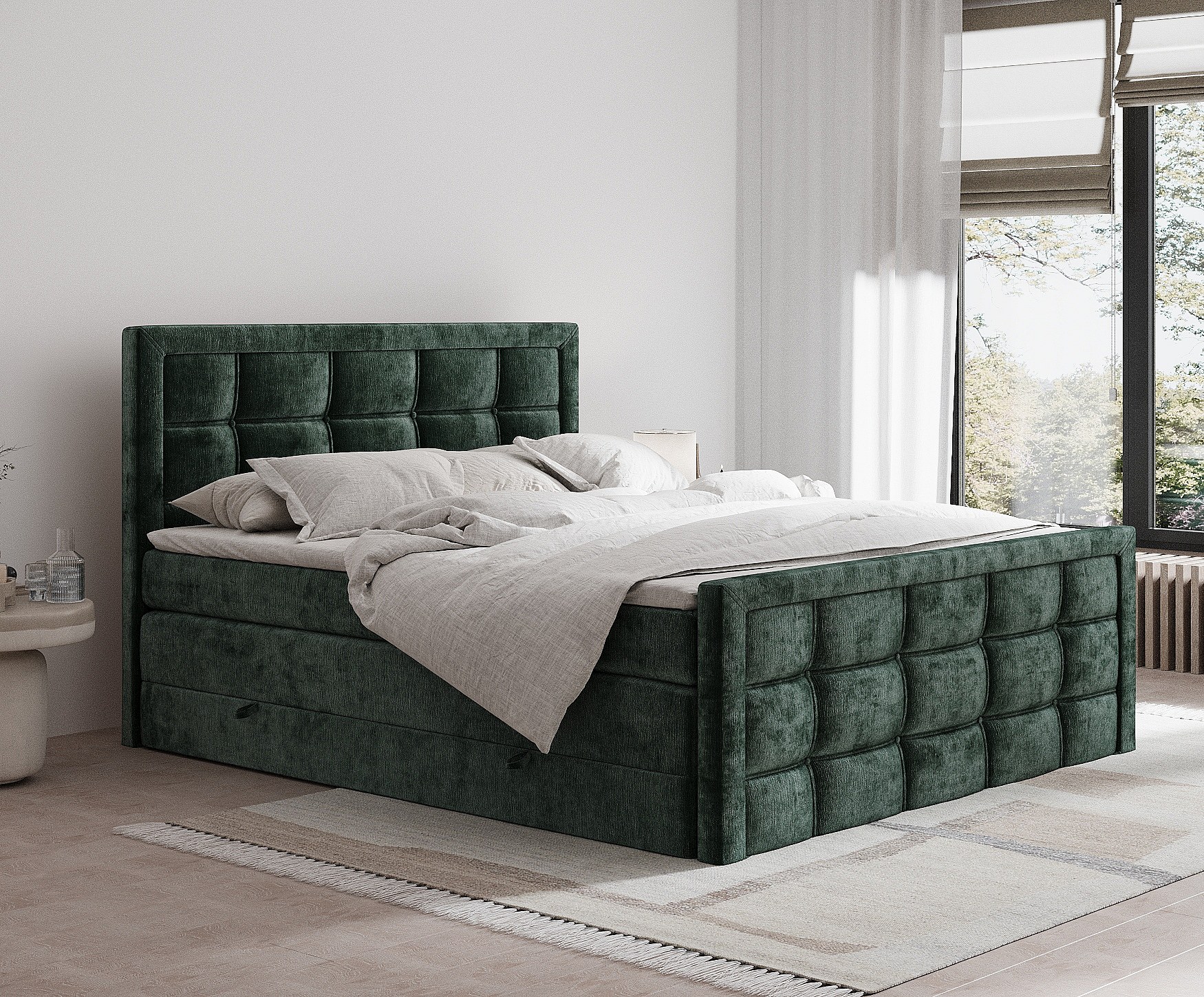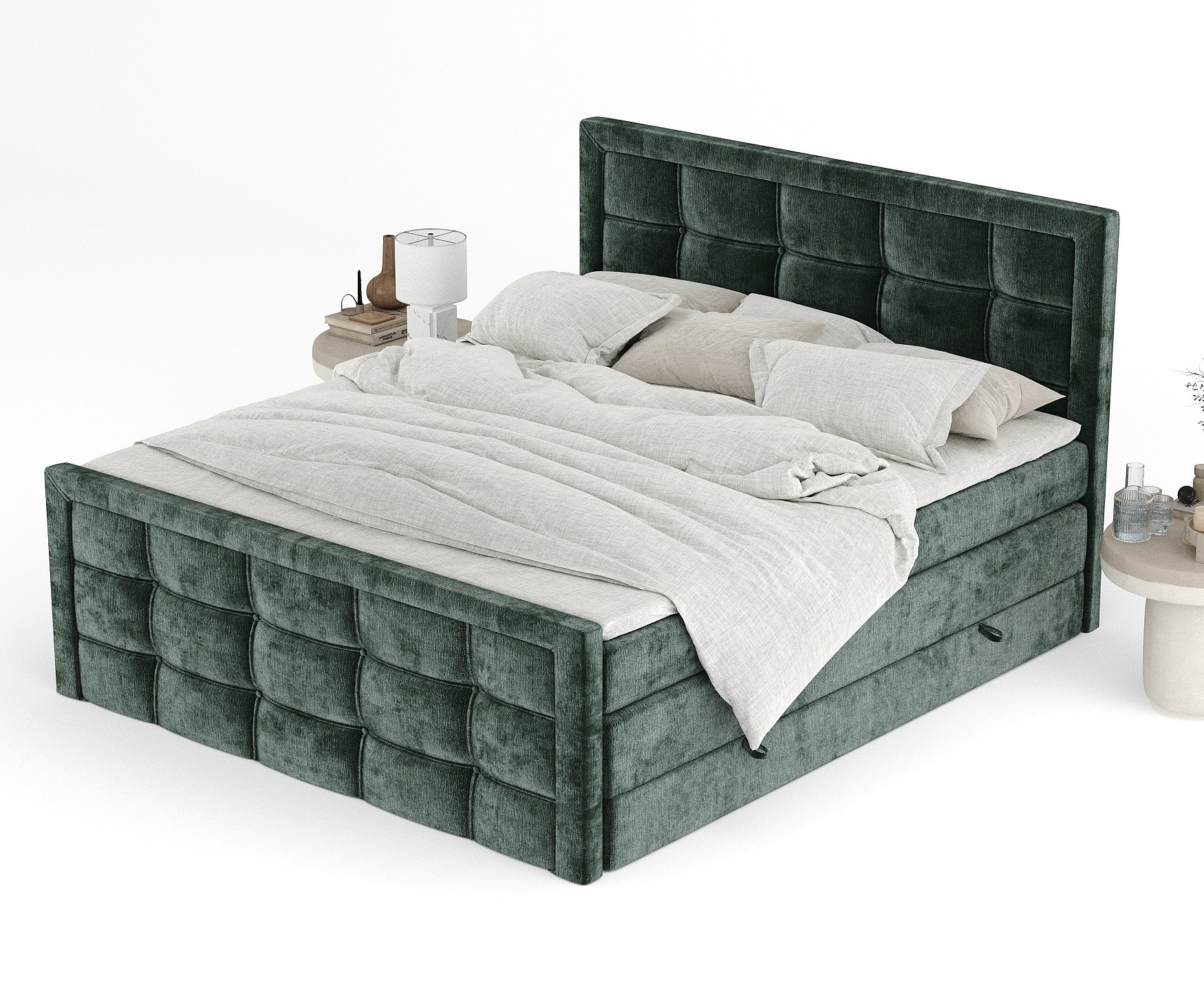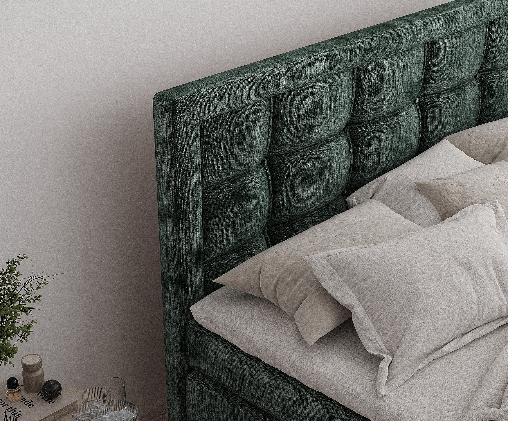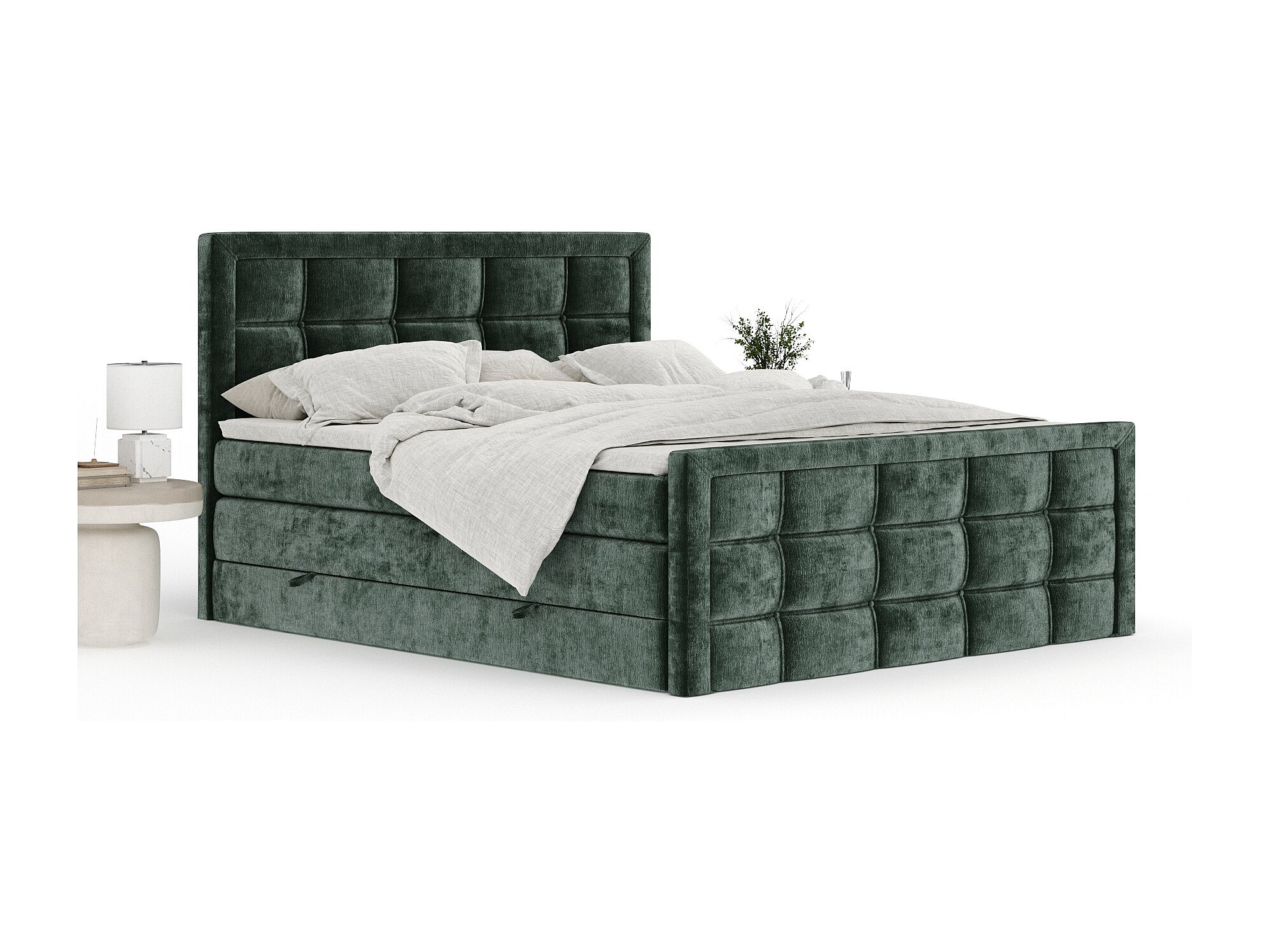 Lit boxspring en tissu chenille Ambrosia - matelas - surmatelas - 140x200 cm - vert