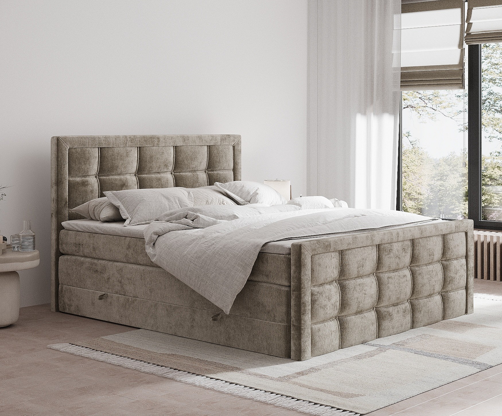 Lit boxspring en tissu chenille Ambrosia - matelas - surmatelas - 160x200 cm - beige