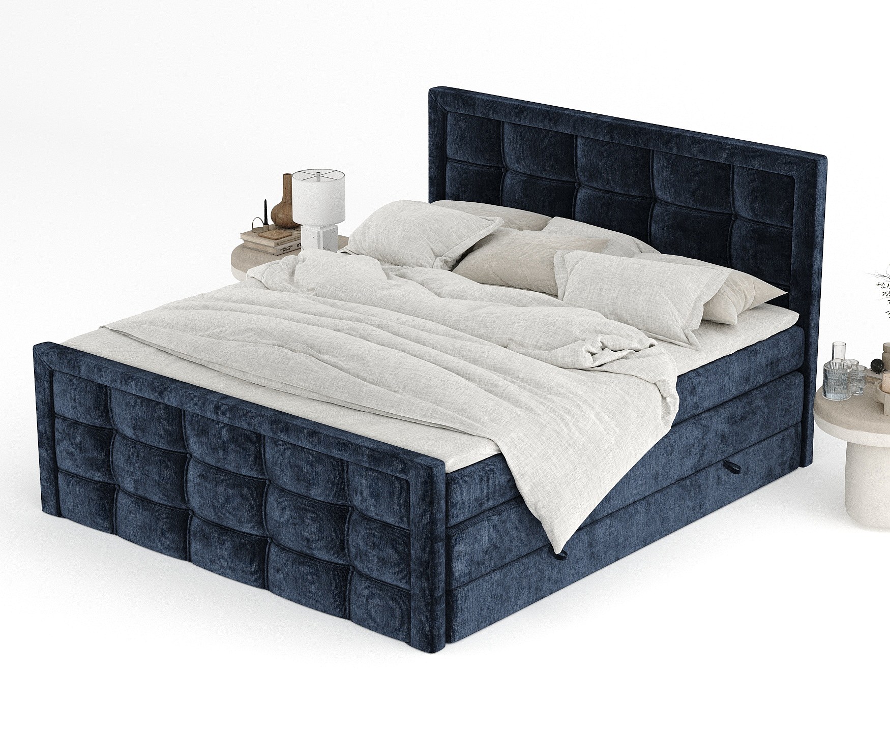 Lit boxspring en tissu chenille Ambrosia - matelas - surmatelas - 160x200 cm - bleu marine