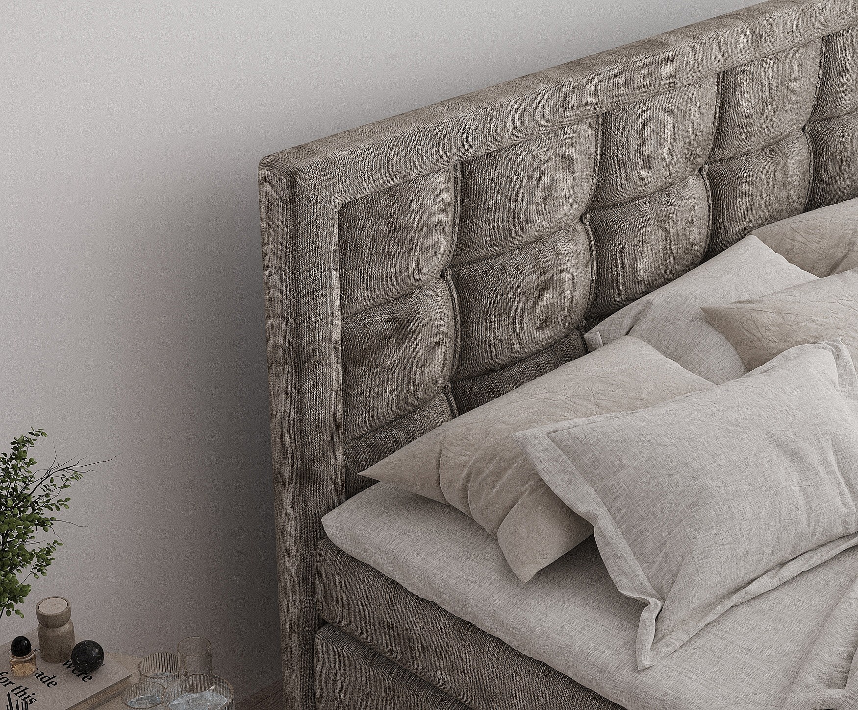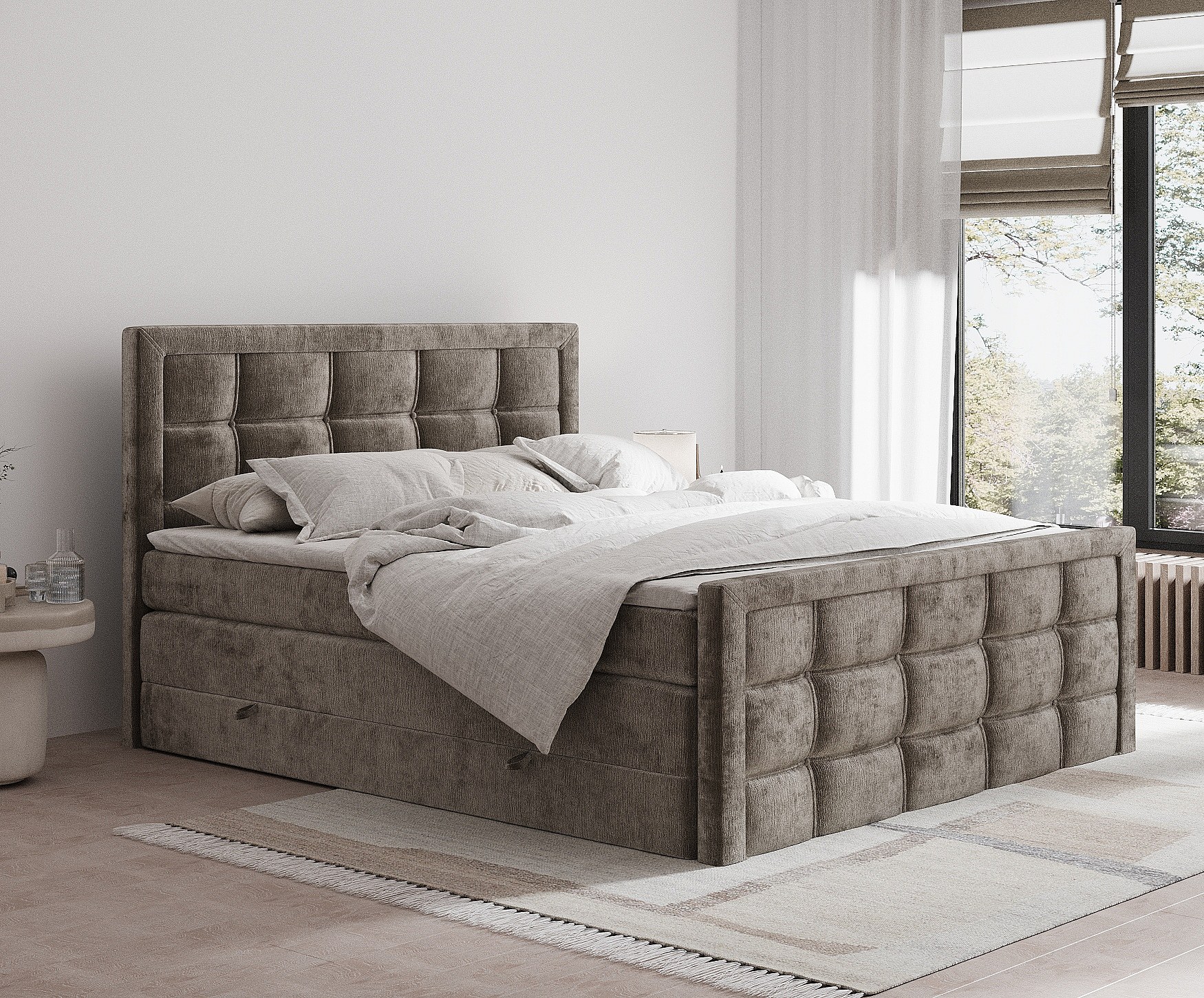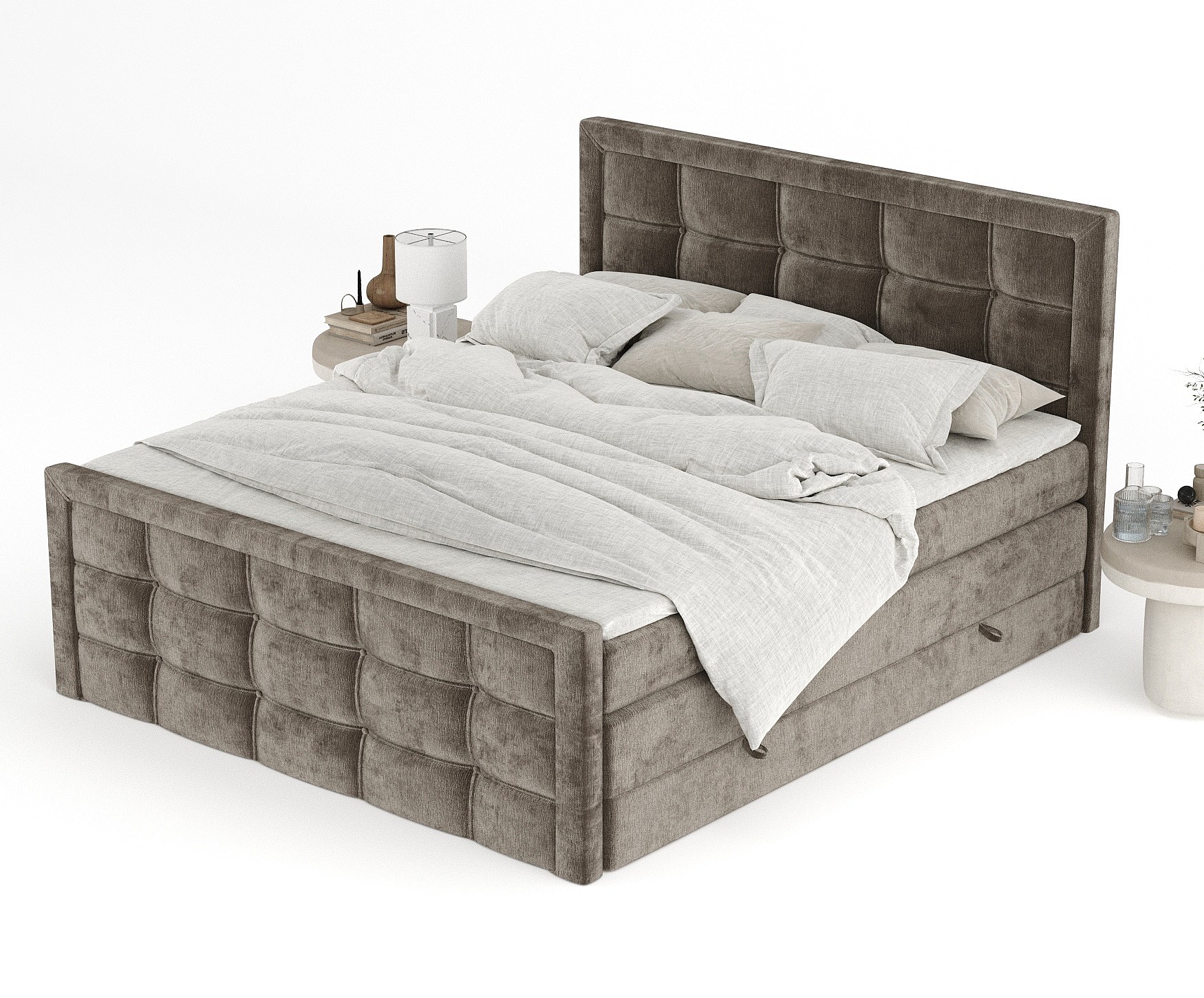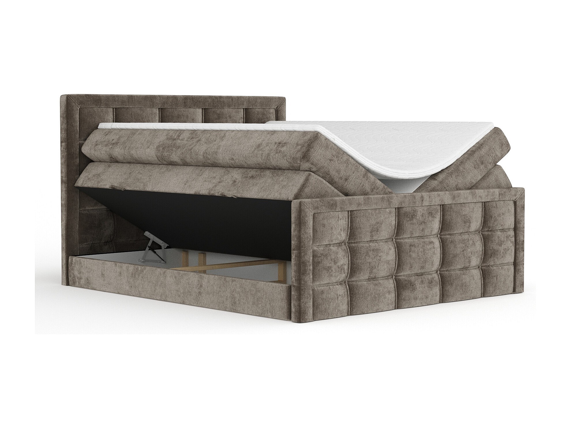 Lit boxspring en tissu chenille Ambrosia - matelas - surmatelas - 160x200 cm - brun