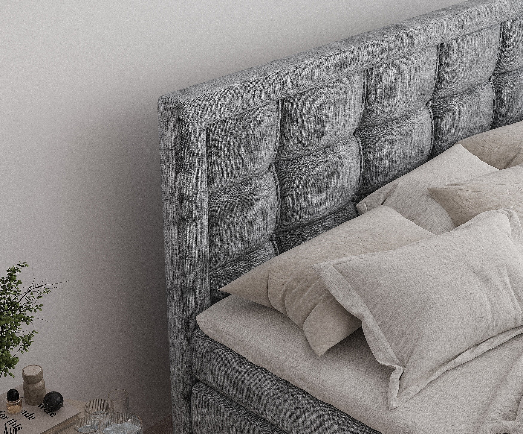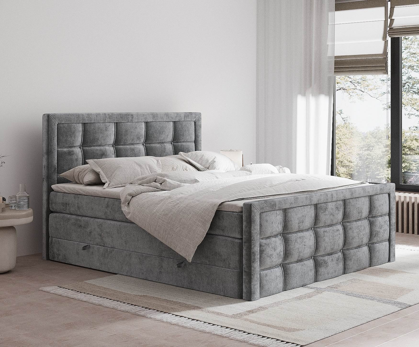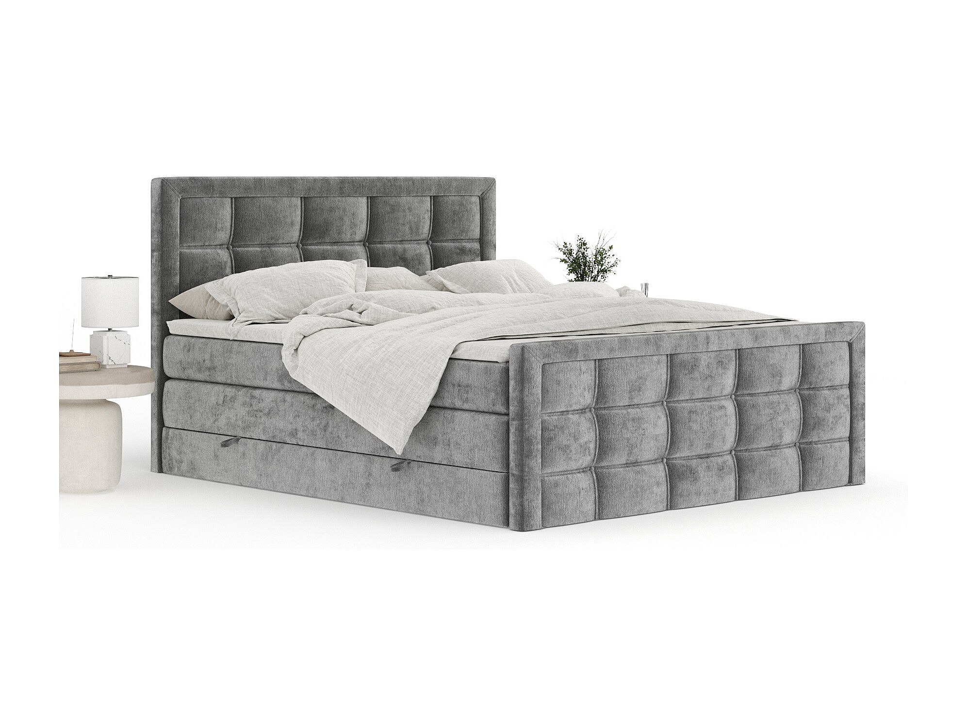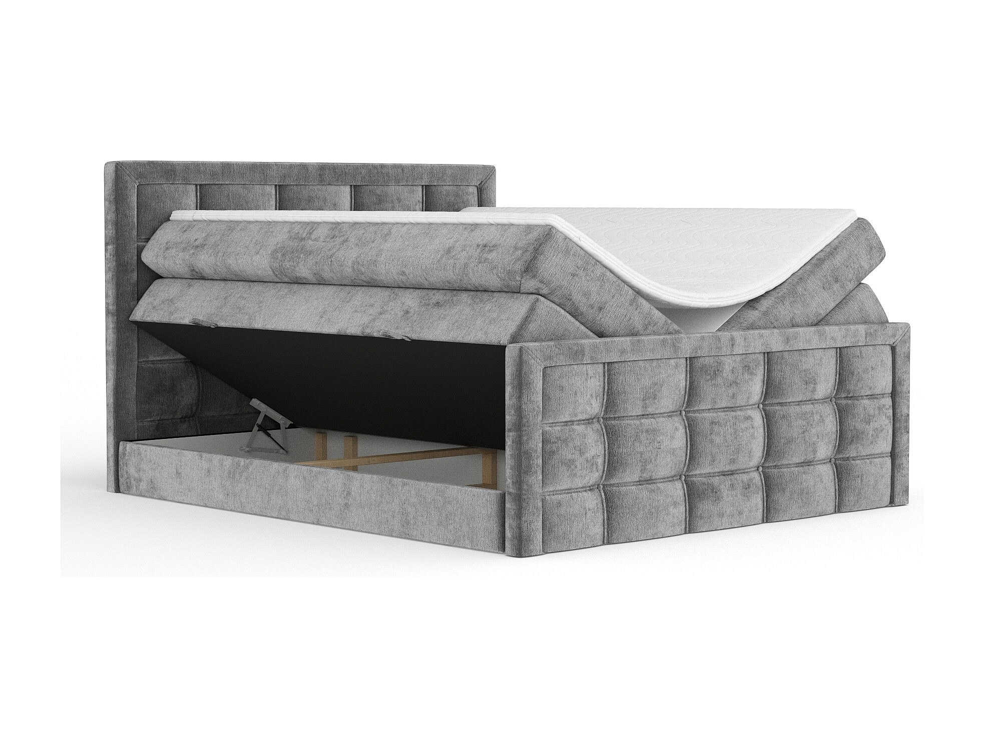 Lit boxspring en tissu chenille Ambrosia - matelas - surmatelas - 160x200 cm - gris