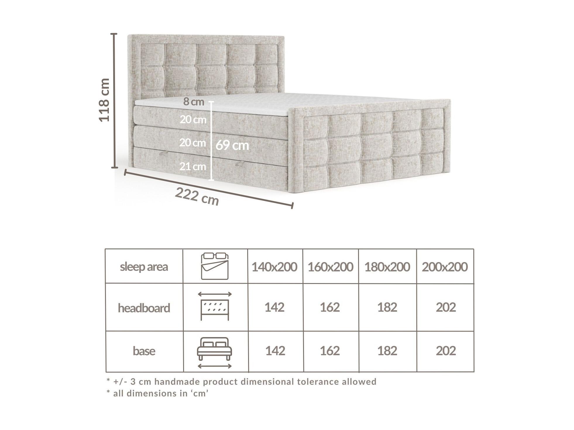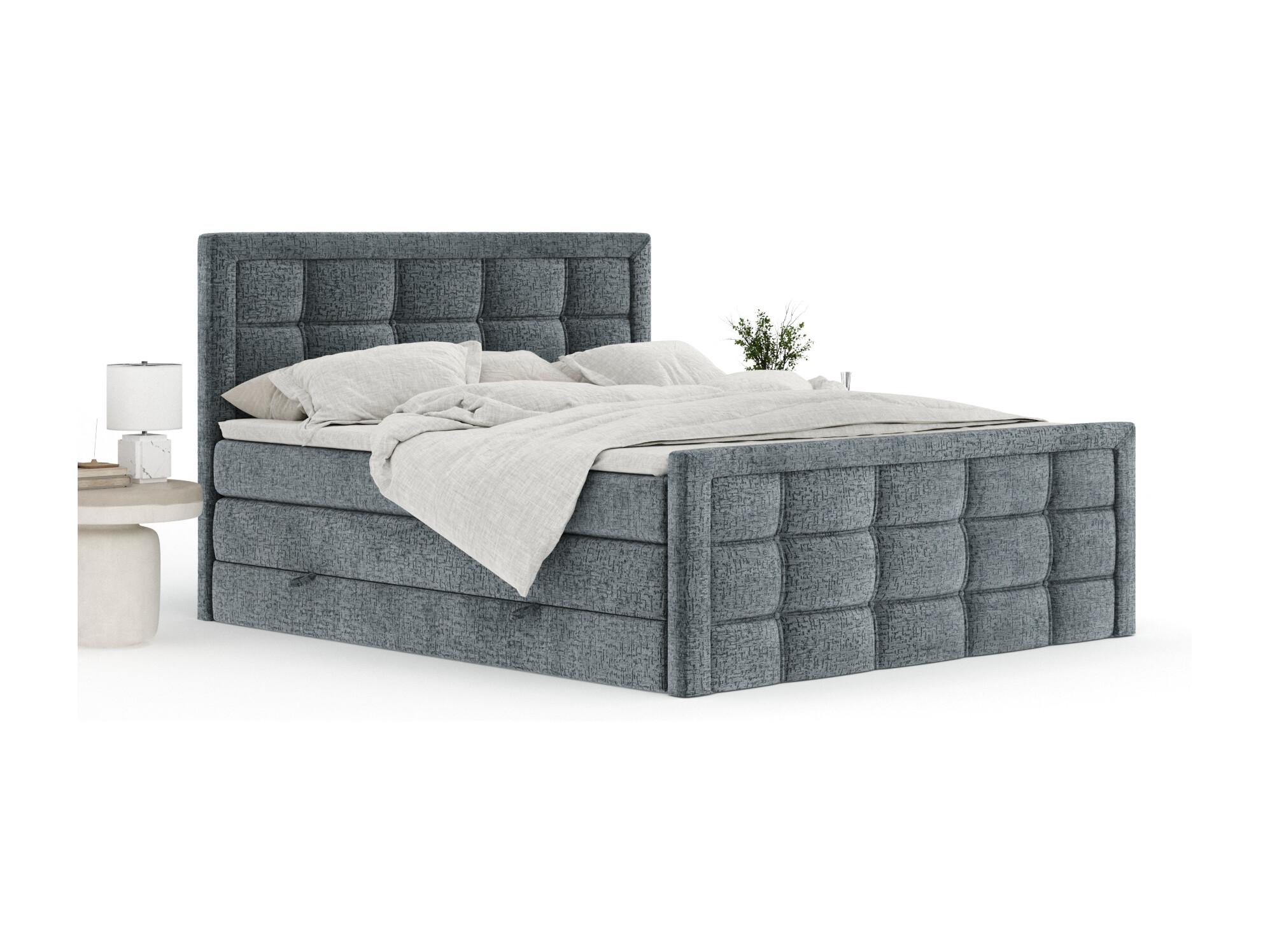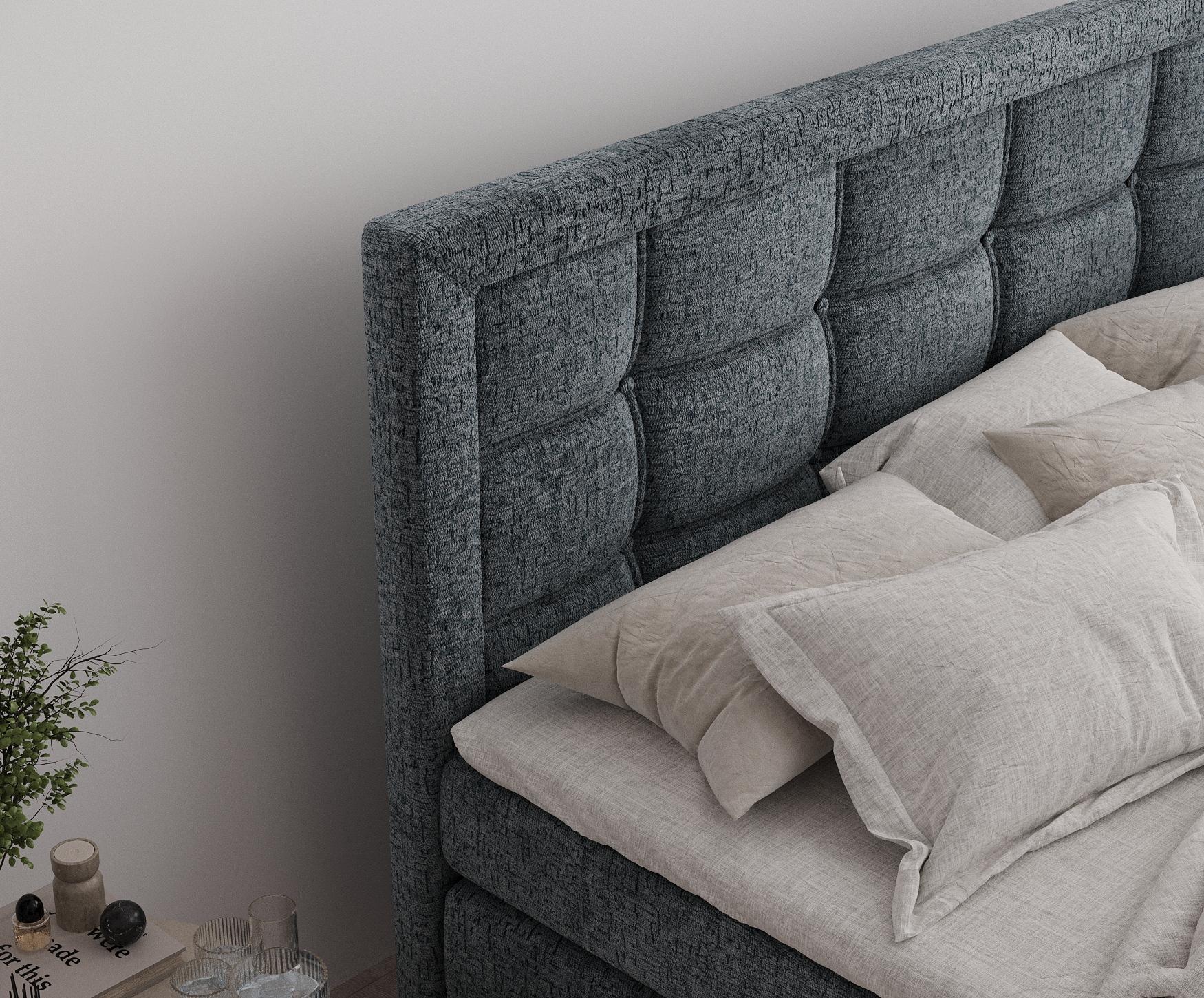 Lit boxspring en tissu chenille Ambrosia - matelas - surmatelas - 180x200 cm - gris