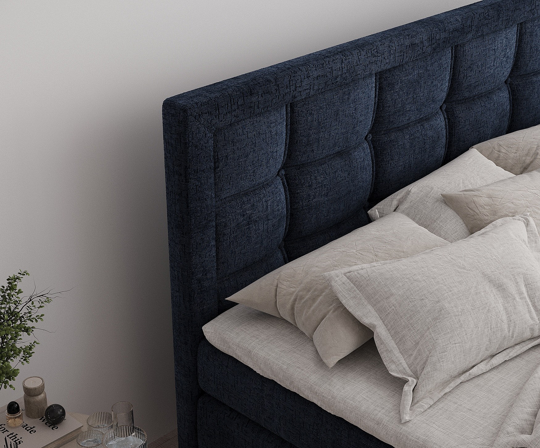Lit boxspring en tissu chenille Ambrosia - matelas - surmatelas - 200x200 cm - bleu marine