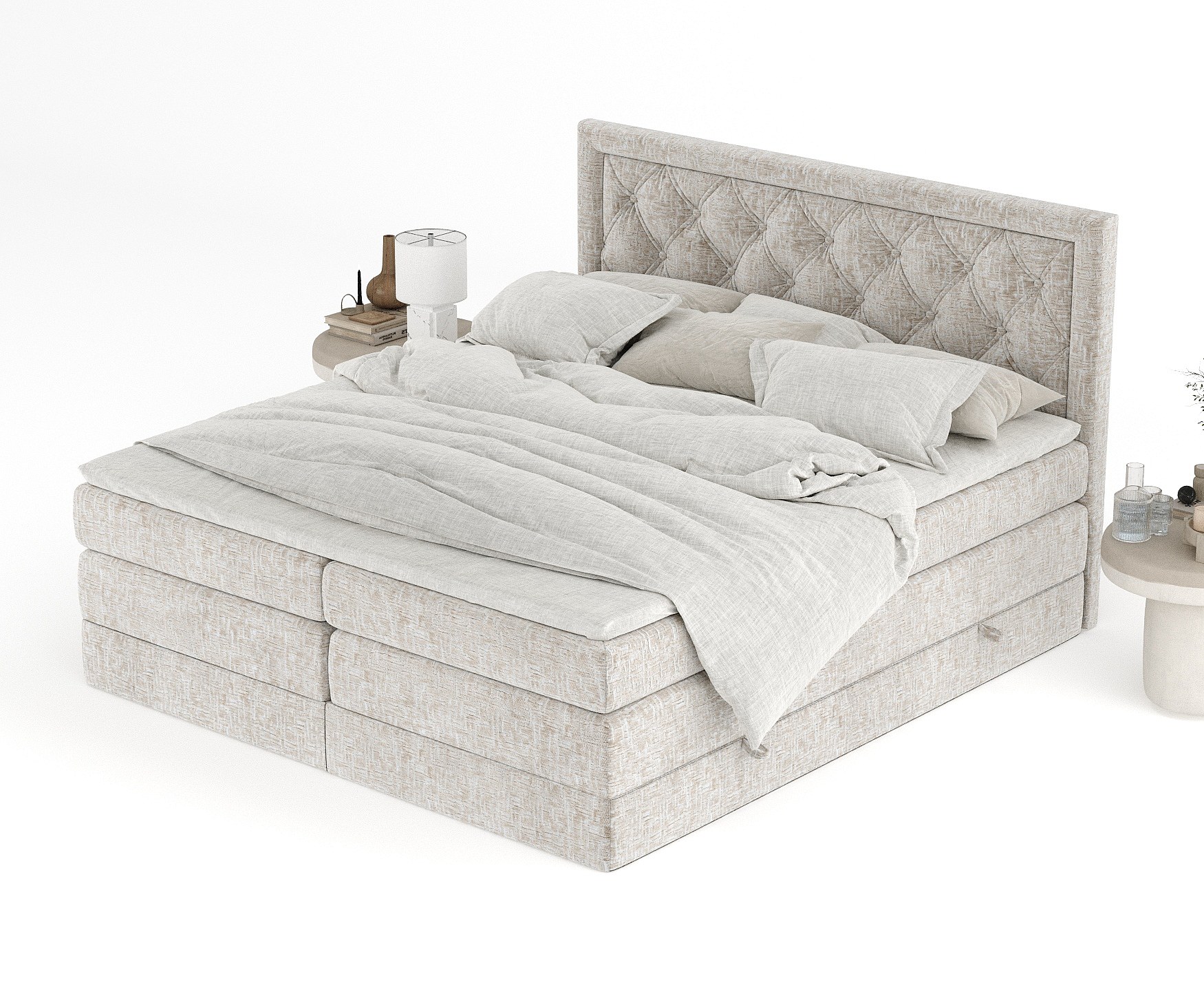 Lit boxspring en tissu chenille Aurelia - matelas - surmatelas - 160x200 cm - beige