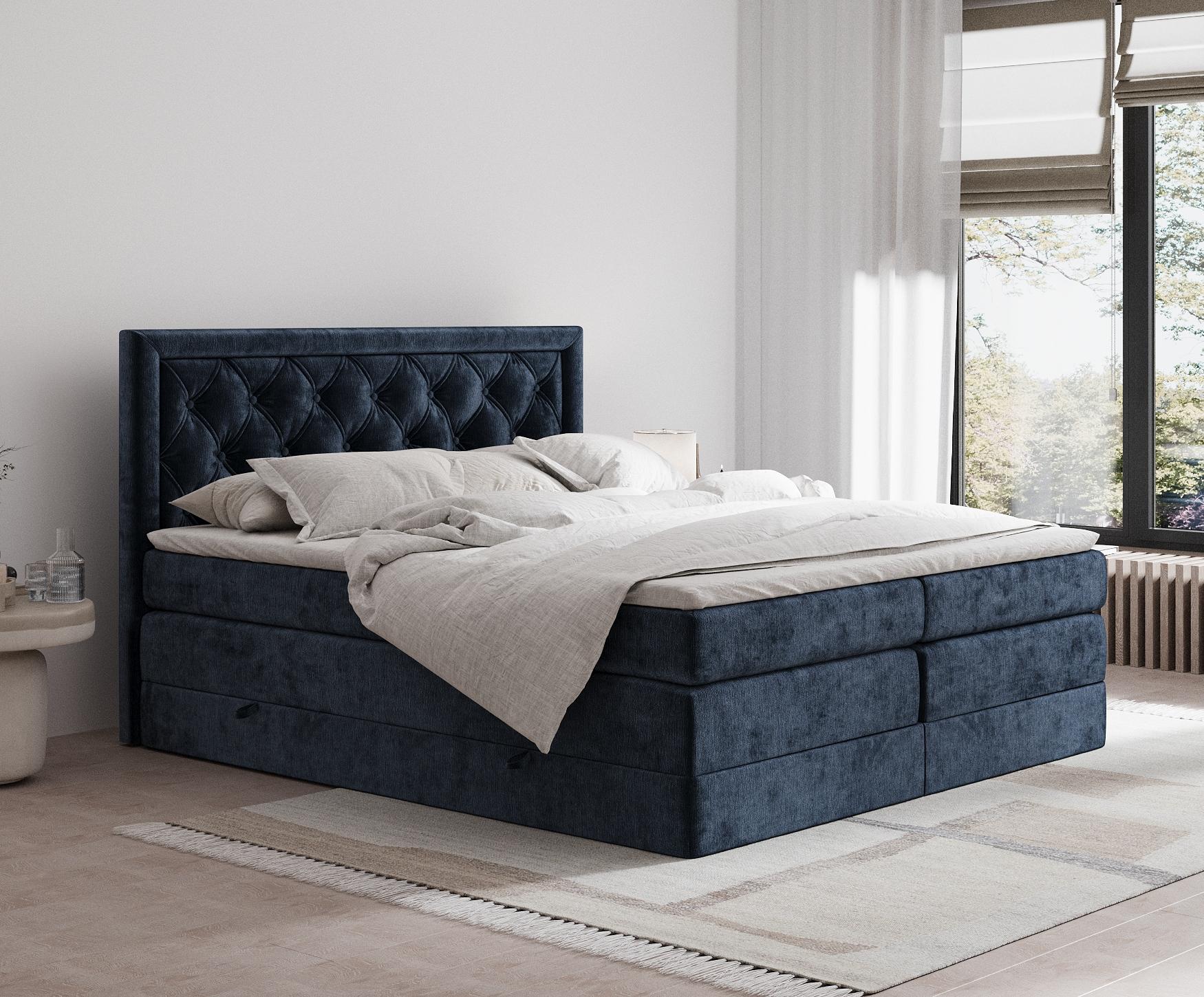Lit boxspring en tissu chenille Aurelia - matelas - surmatelas - 160x200 cm - bleu marine