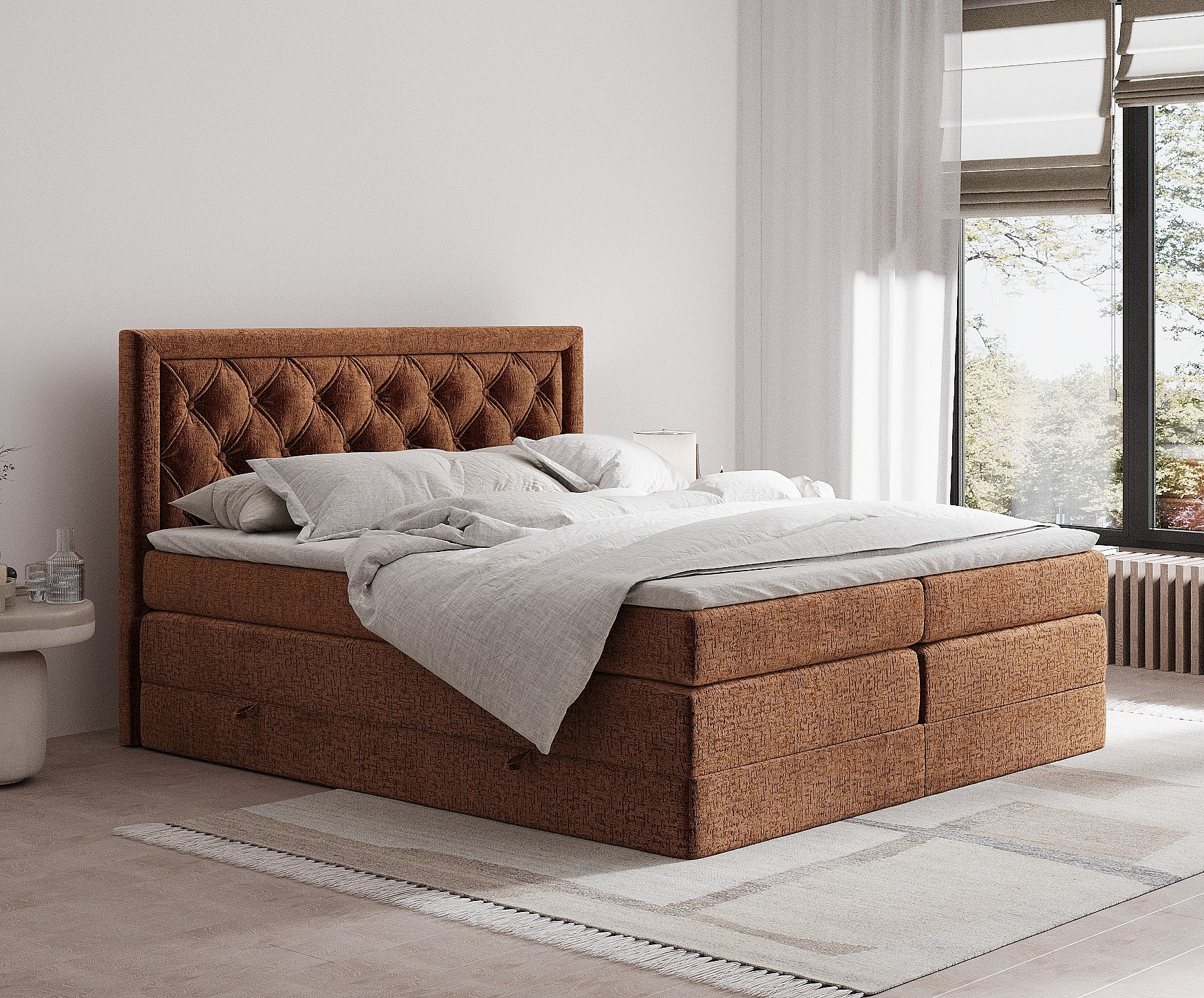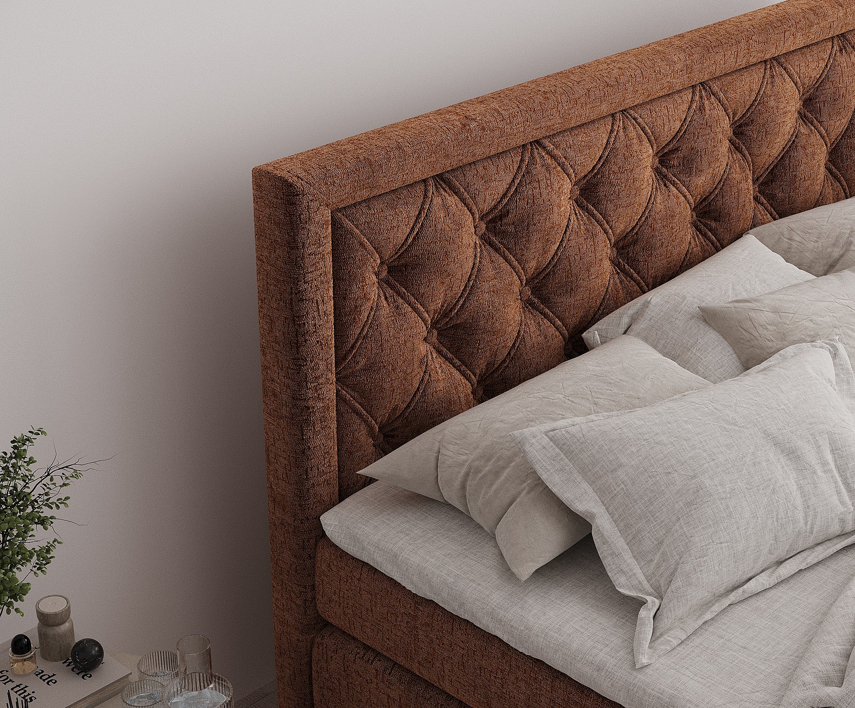 Lit boxspring en tissu chenille Aurelia - matelas - surmatelas - 200x200 cm - couleur cuivre