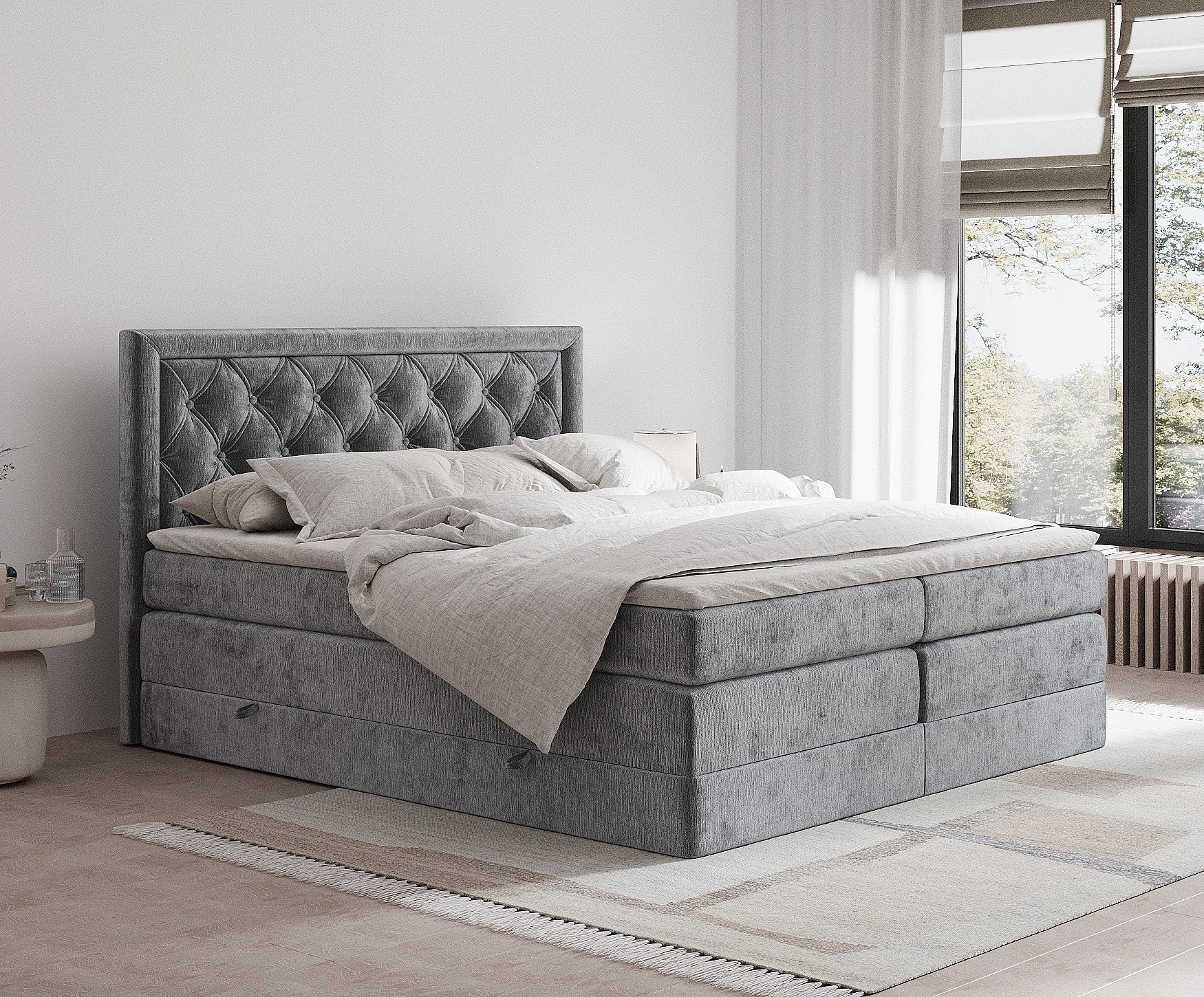 Lit boxspring en tissu chenille Aurelia - matelas - surmatelas - 200x200 cm - gris