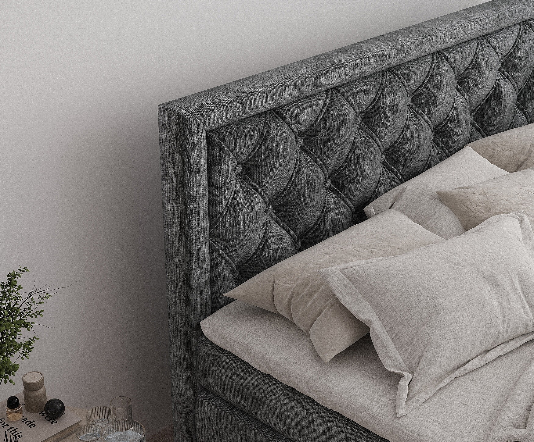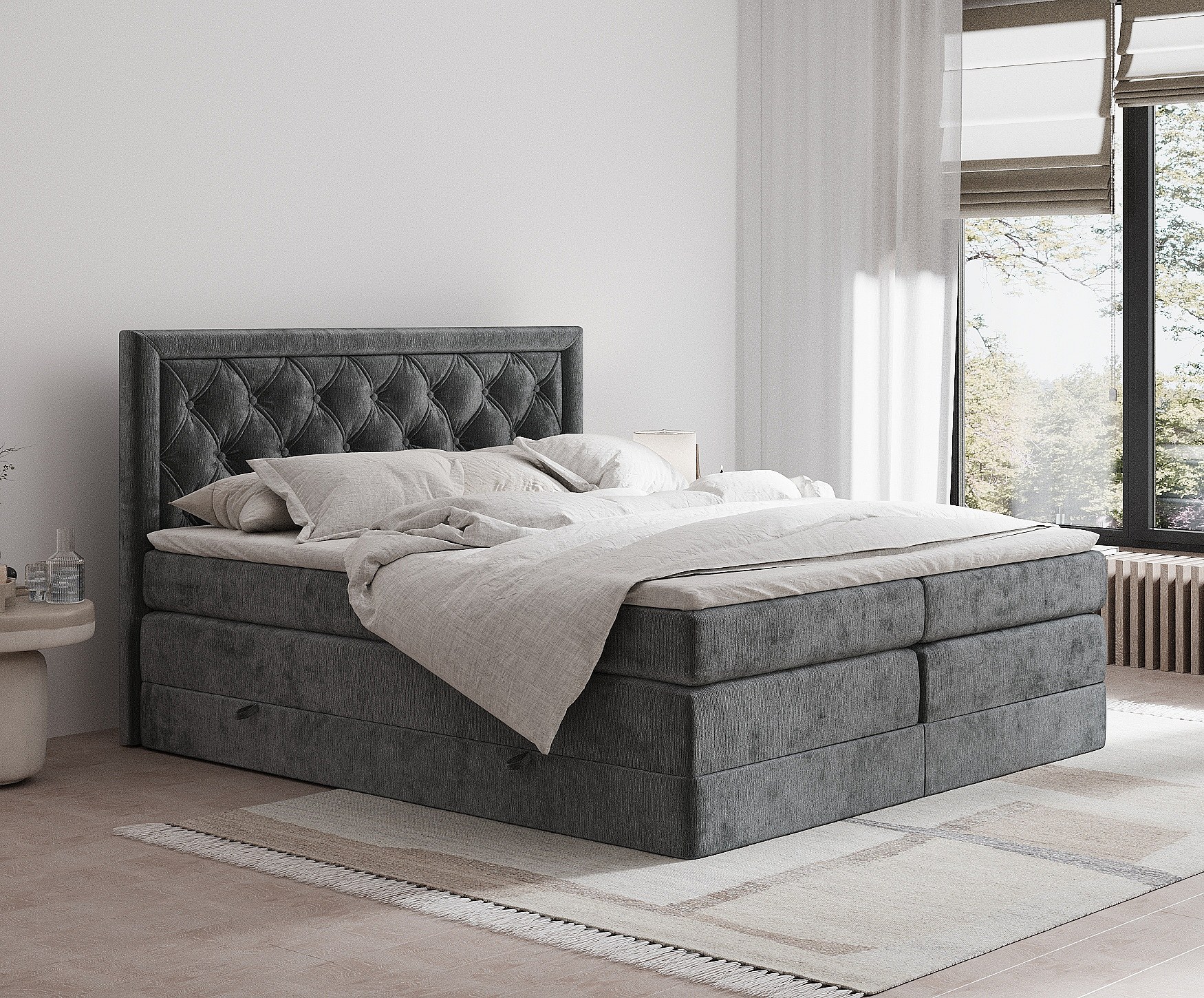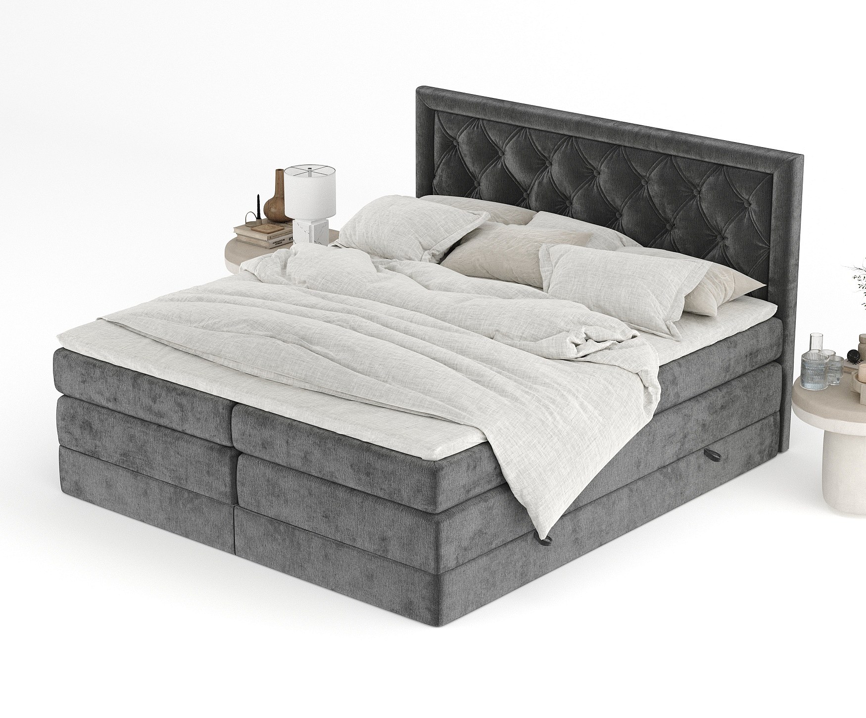 Lit boxspring en tissu chenille Aurelia - matelas - surmatelas - 200x200 cm - gris foncé