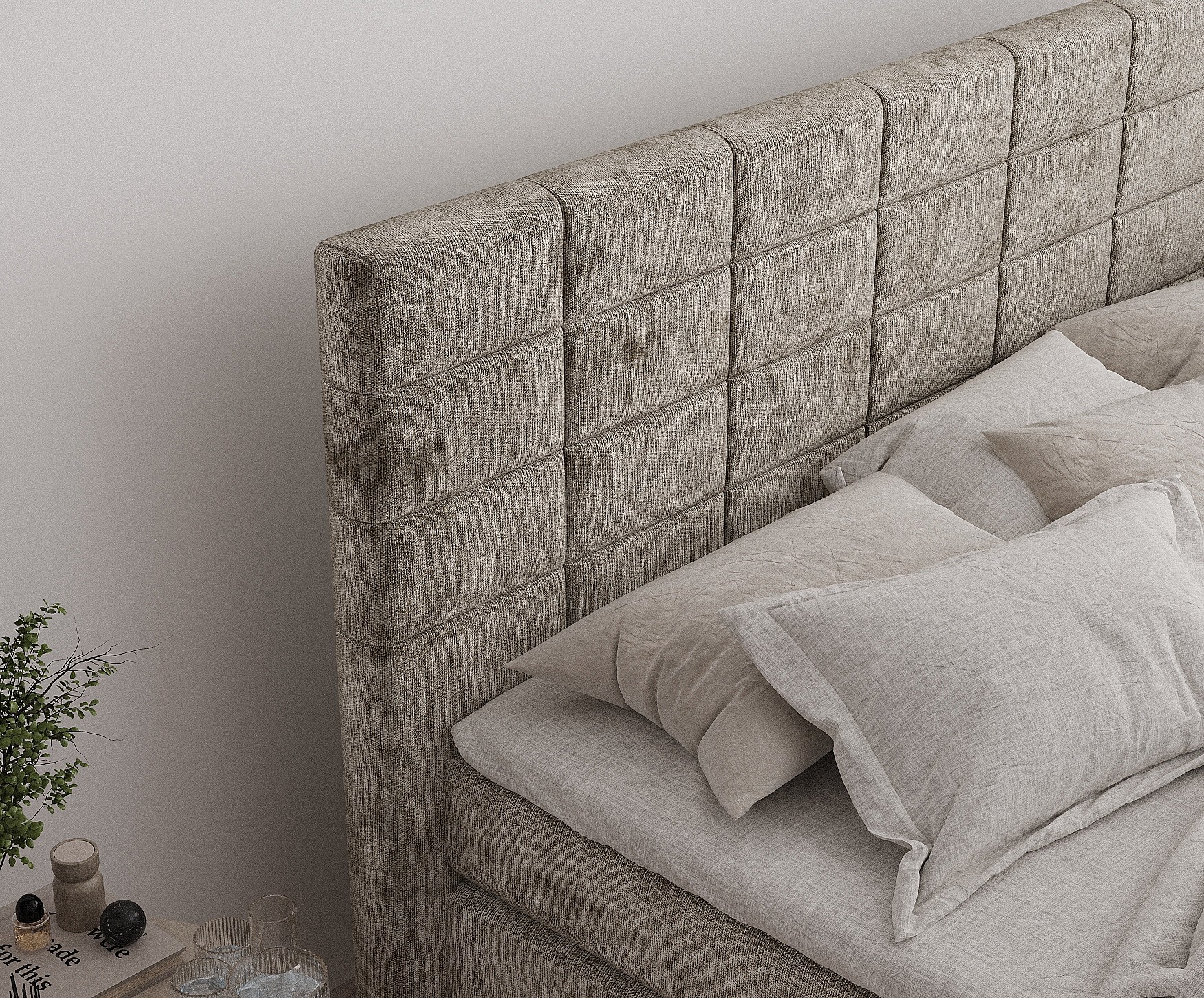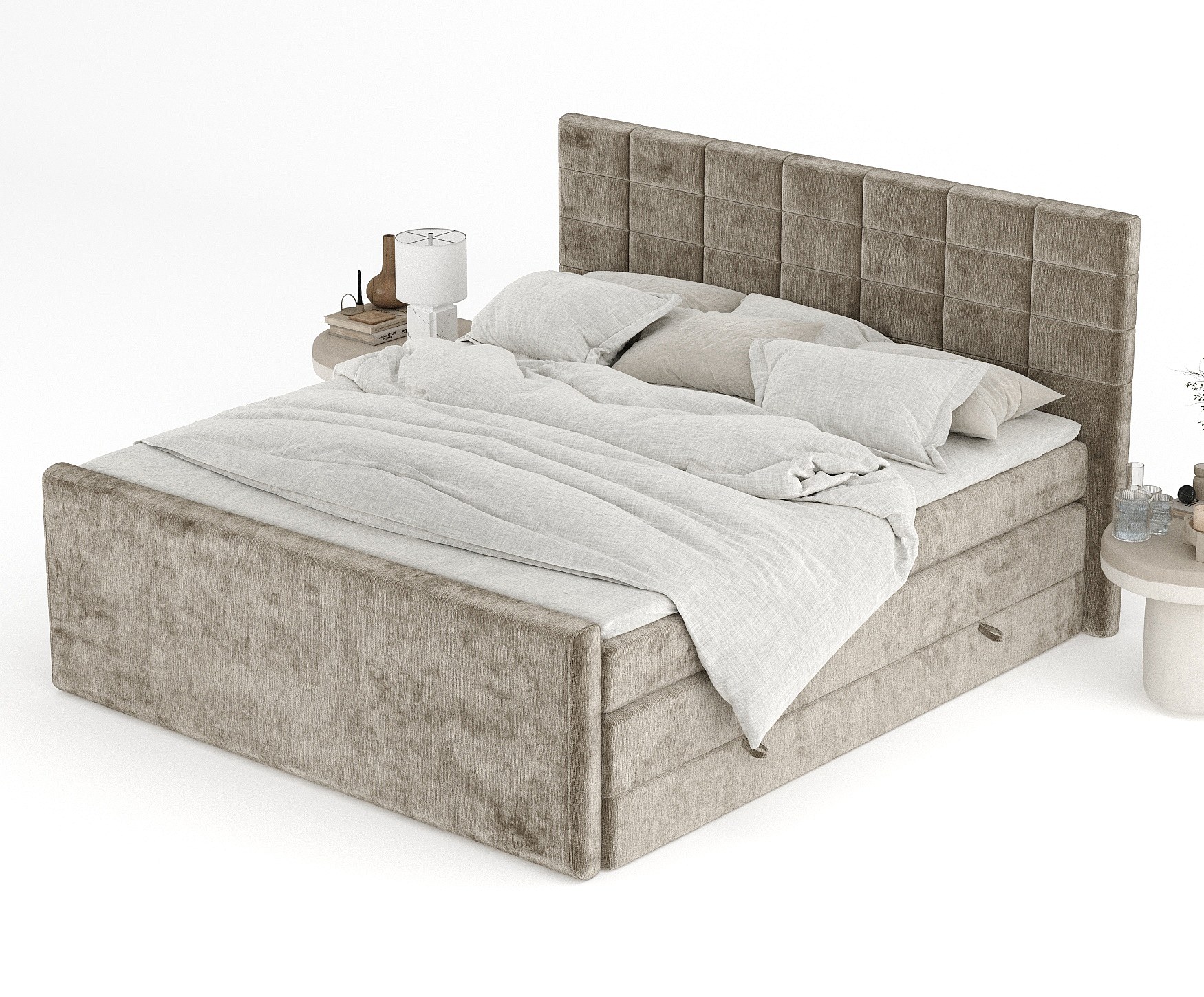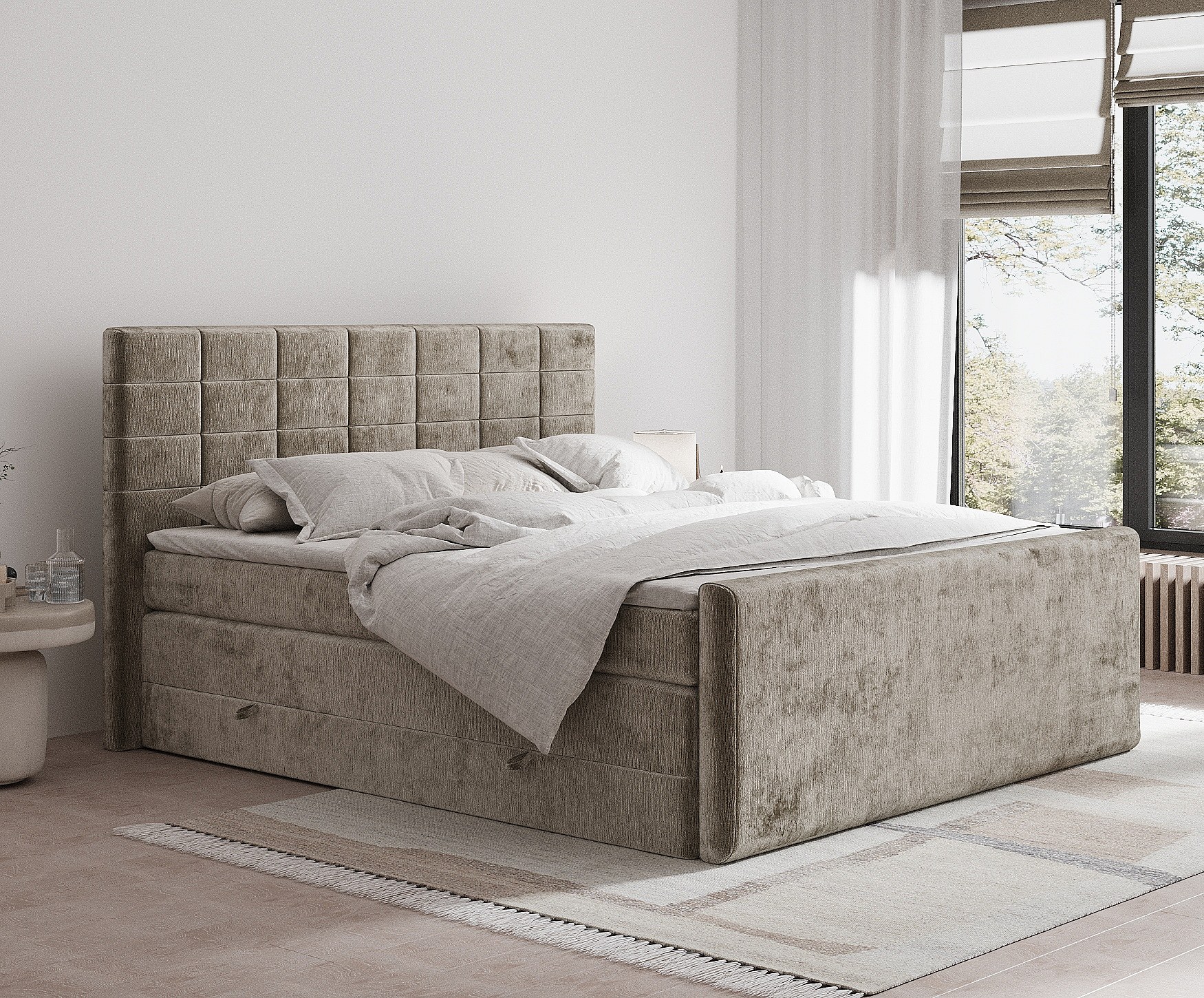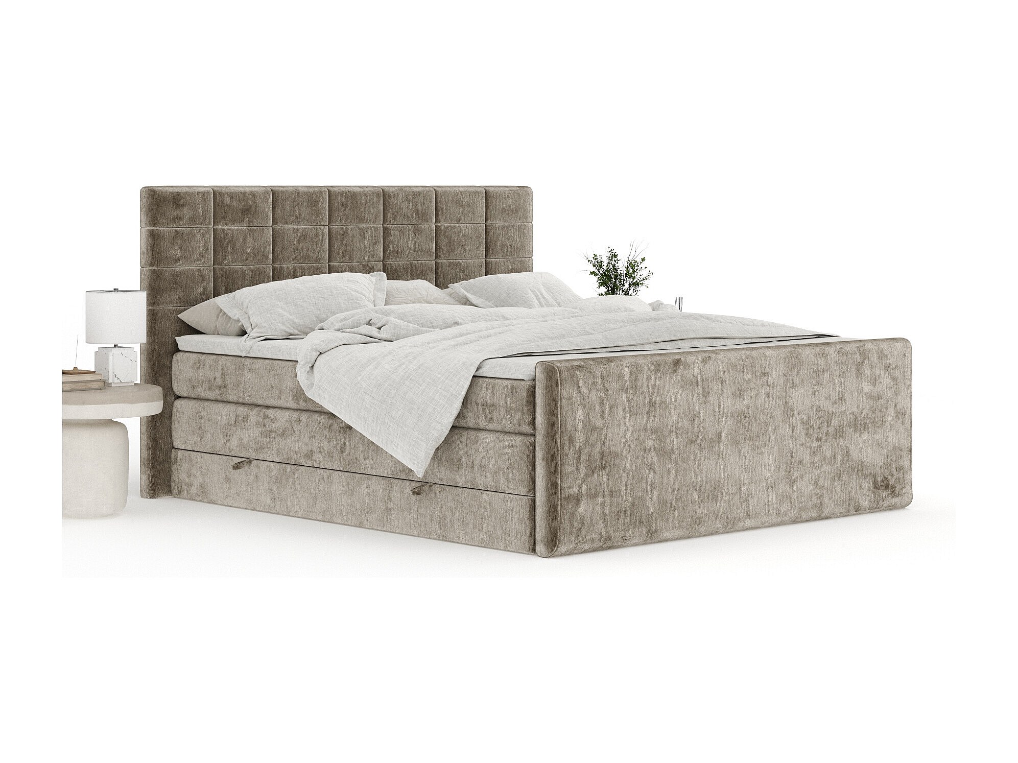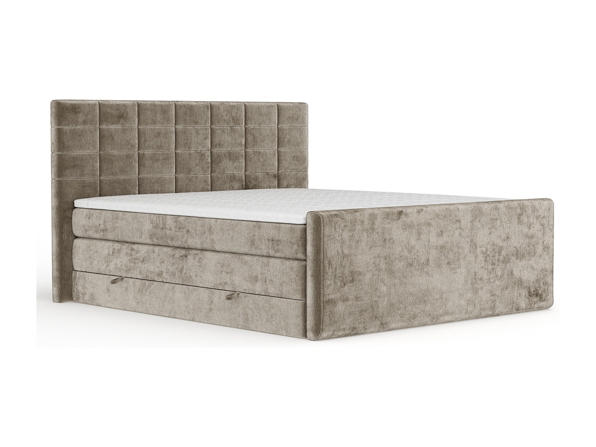 Lit boxspring en tissu chenille Ava - matelas - surmatelas - 160x200 cm - beige