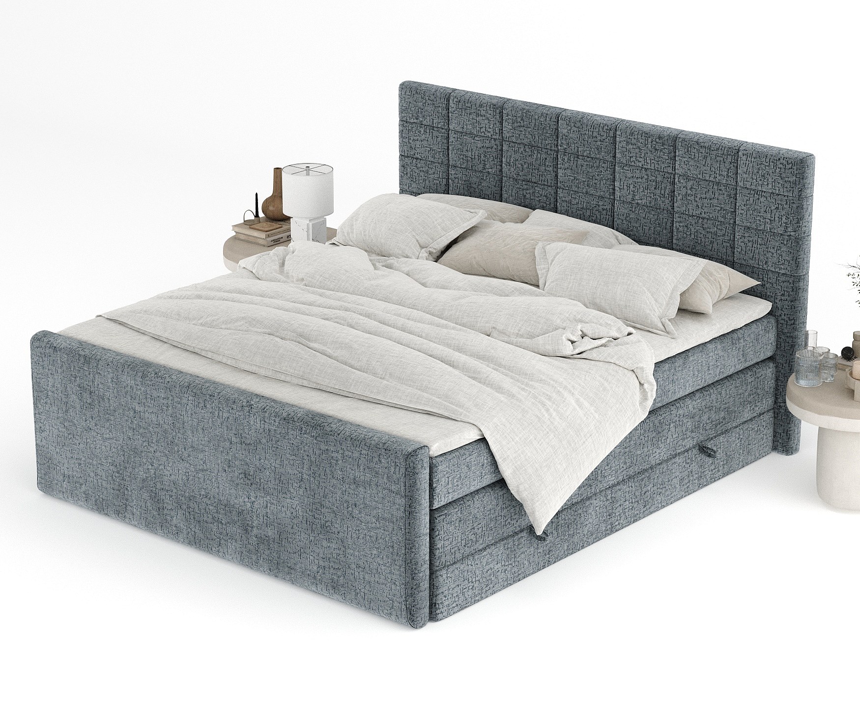 Lit boxspring en tissu chenille Ava - matelas - surmatelas - 160x200 cm - gris