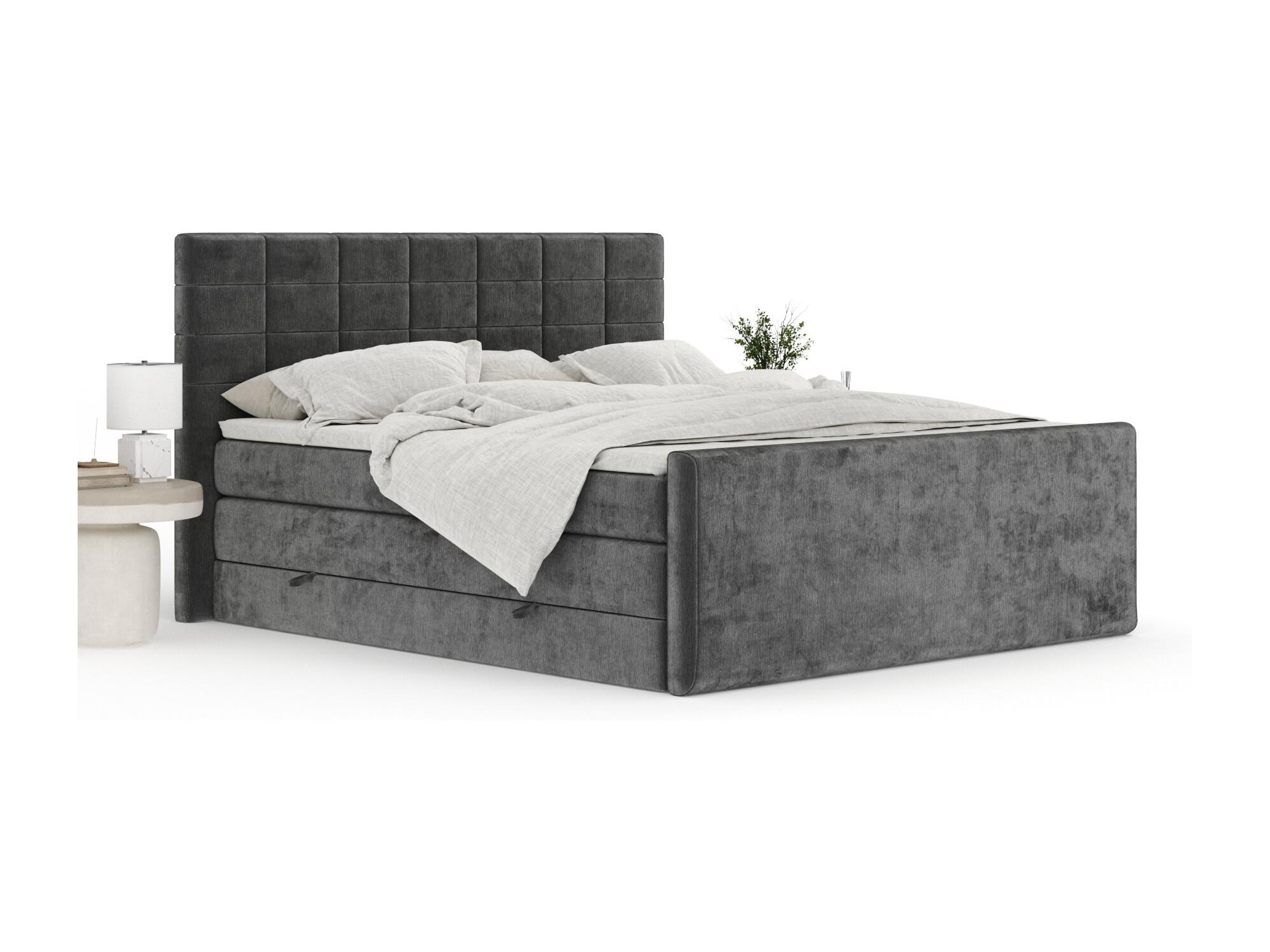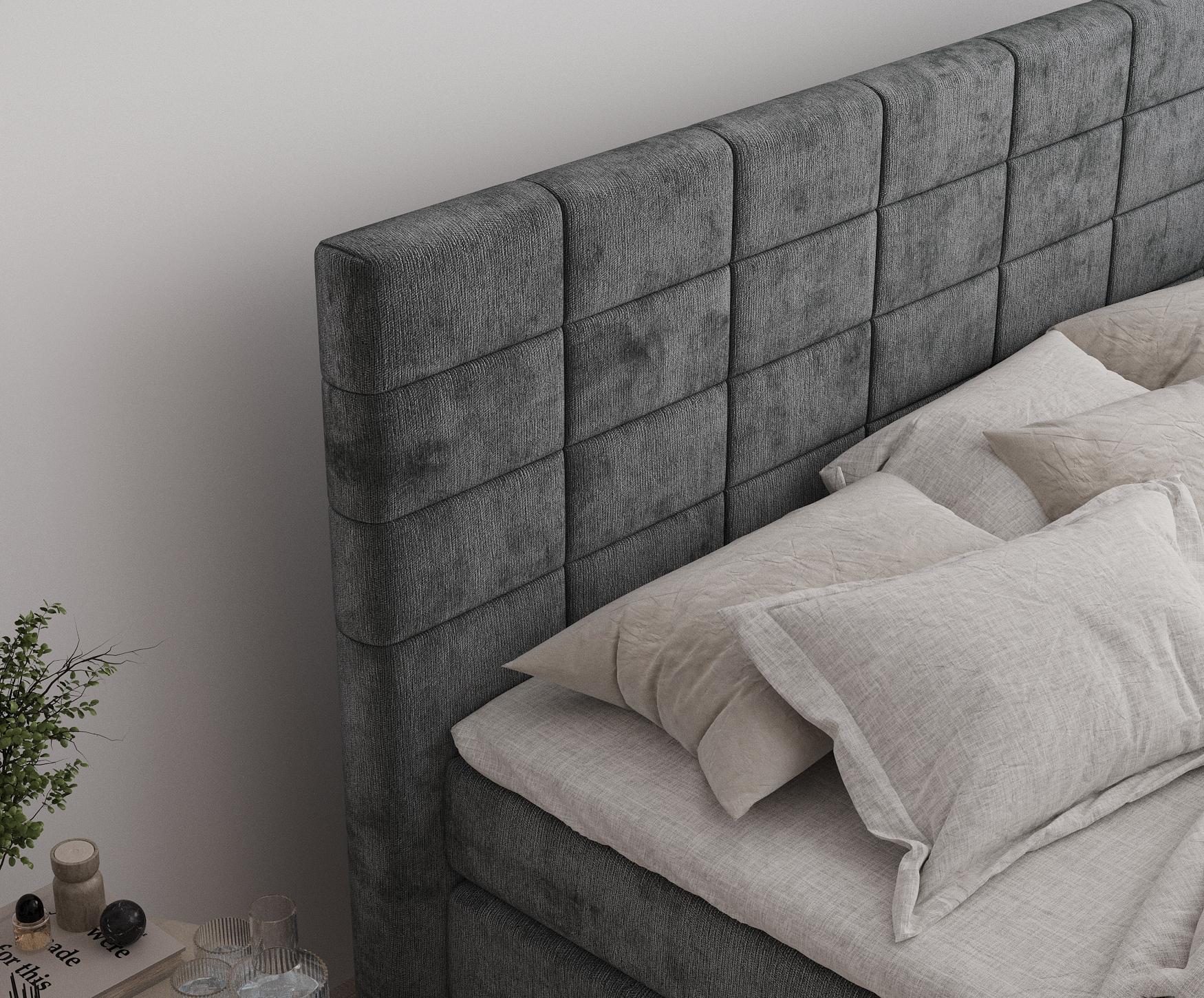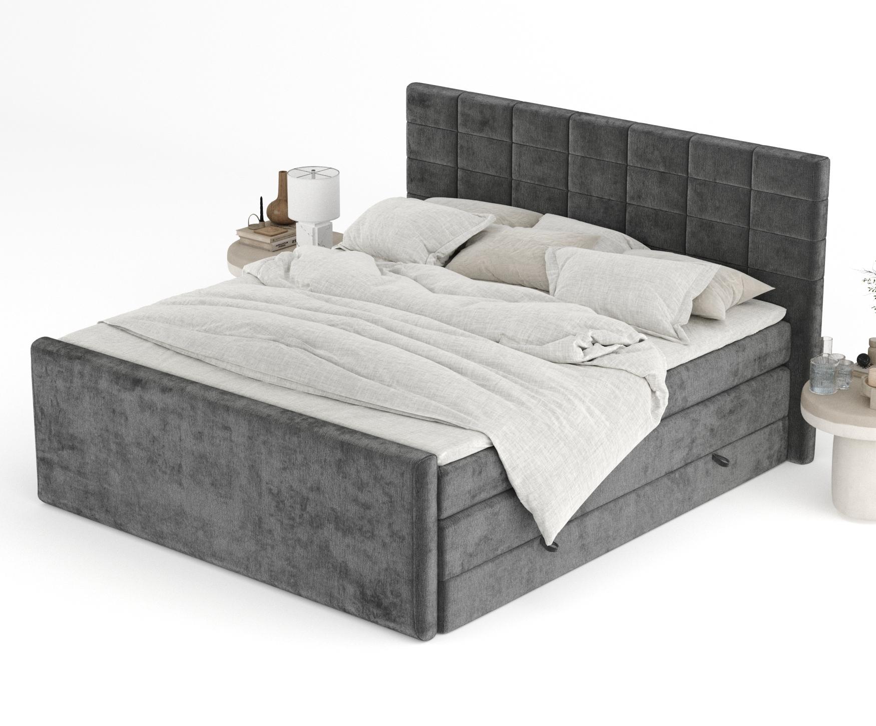 Lit boxspring en tissu chenille Ava - matelas - surmatelas - 160x200 cm - gris foncé